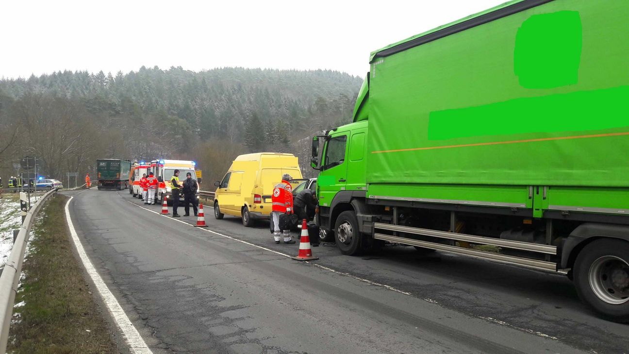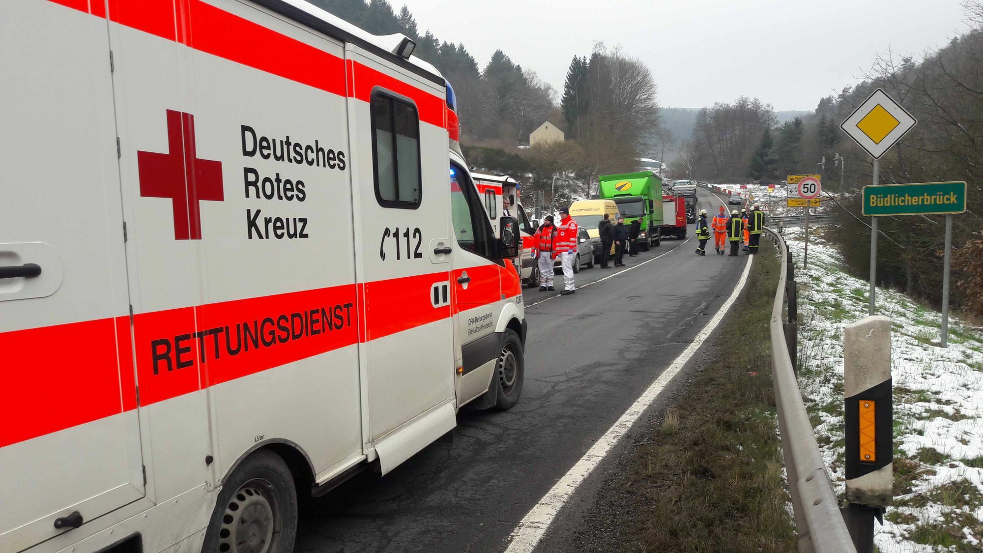 Nach Angaben der Polizei Morbach waren zwei Autos und ein LKW auf derLandstraße in Richtung Thalfang unterwegs, als aus bislang unbekannter Ursache das erste Fahrzeug abbremste. Darauf krachten der zweite PKW und der LKW auf das Fahrzeug. Bei dem Unfall sollen mindestens vier Erwachsene und zwei Kinder leicht verletzt worden sein. Alle Beteiligten wurden zur Abklärung in Krankenhäuser gebracht. Während der Rettungs- und Bergungsarbeiten blieb die L 150 zunächst voll gesperrt, später wurde eine Spur aufgemacht. An allen Fahrzeugen entstand erheblicher Sachschaden. Im Einsatz waren die Polizei Morbach, die Feuerwehr aus Thalfang sowie das DRK aus Thalfang, Morbach und Hermeskeil und der Rettungshubschrauber Christoph 10. RED, Fotos: Agentur Siko