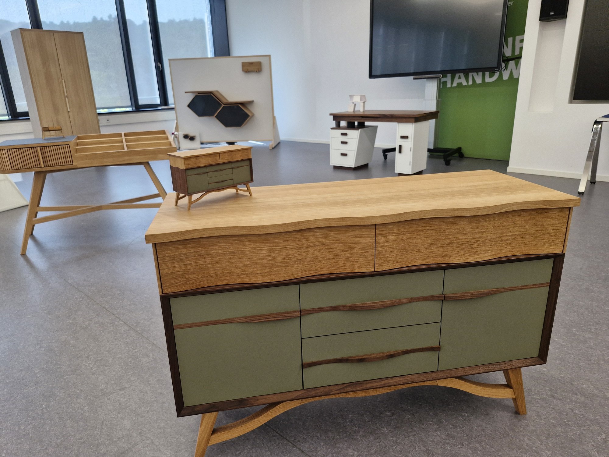 Wer die Ausstellung der Tischlermeisterstücke in der HWK Trier am vergangenen Freitag versäumt hat, kann sich im Nachgang noch eine Auswahl davon ansehen. Möglich macht das eine Präsentation bei Hees & Peters/MOBAH in Trier, Ruwerer Straße 25.