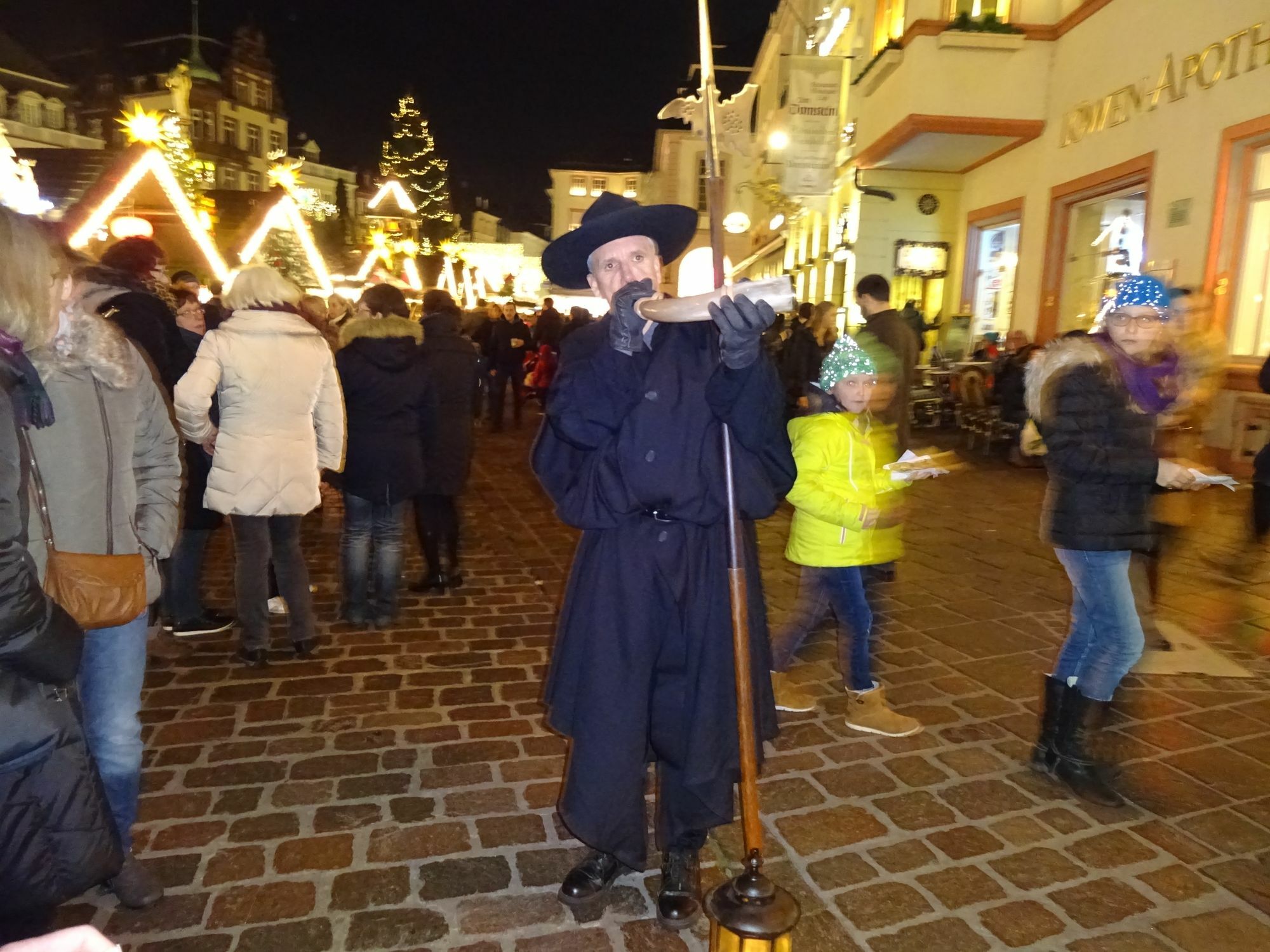 Erst seit vergangenem Jahr hat Gästebegleiter Hans-Peter Peters den schweren und - zu dieser Jahreszeit - auch kalten Job des Nachtwächters in Trier übernommen. Doch ein Gutes hat der Arbeitsantritt im Winter: Man hat nicht nur deutlich weniger mit herumziehenden "Lumpen" zu tun, die man zur Nachtruhe nach Hause schicken muss - man hat auch Zeit, sich mit Liedern die Zeit zu vertreiben, auf dem Weg ein Schwätzchen mit den Kneipenbesitzern zu halten, um die neuesten Gerüchte und Nachrichten zu erfahren und weiter zu tragen, und natürlich die ein oder andere Porz Viez zu leeren.