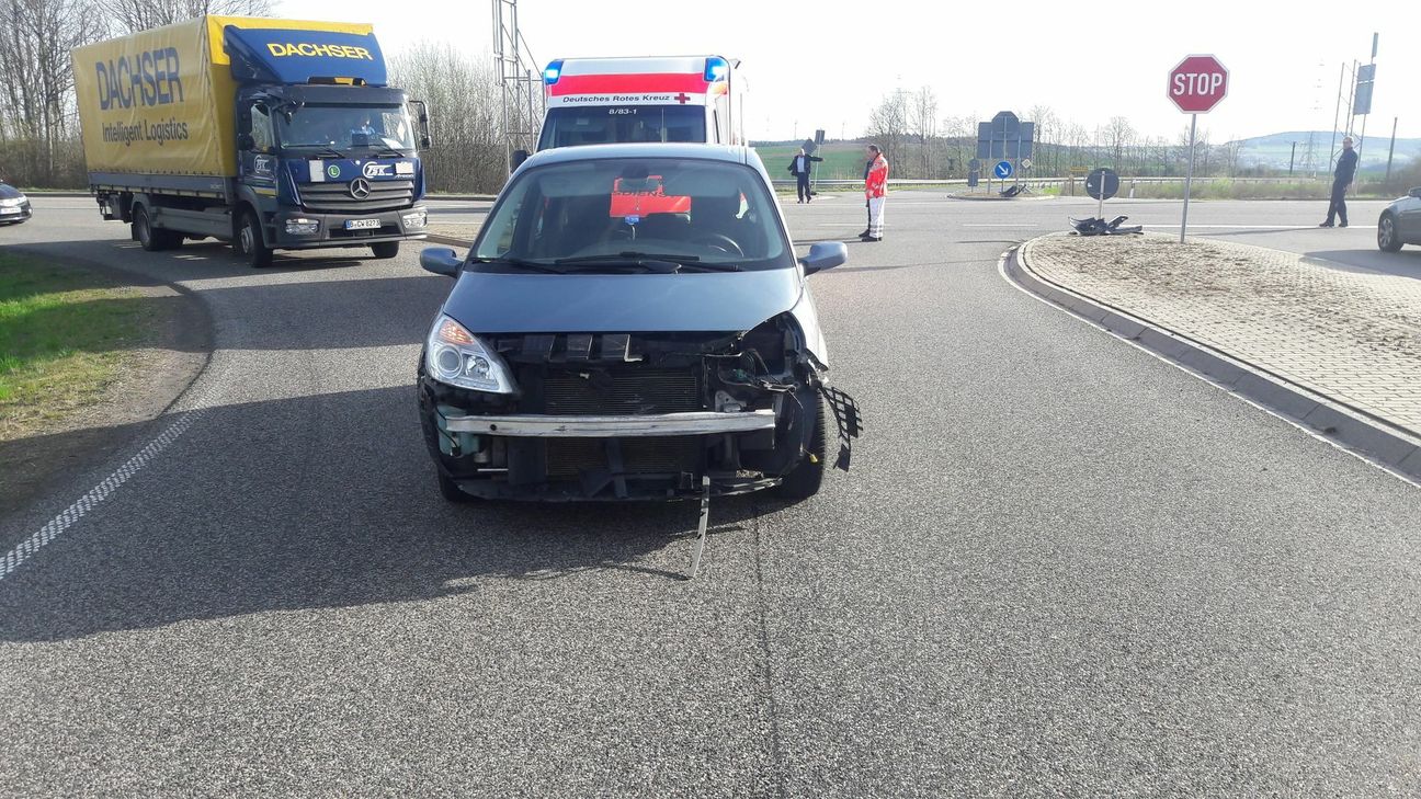 Nach Angaben der Polizei Hermeskeil war eine Frau mit ihrem Auto von Thomm Richtung Osburg unterwegs. Dort wollte sie über die Kreuzung fahren und übersah dabei vermutlich das Motorrad. Beide Fahrzeuge kollidierten. Der Motorradfahrer wurde schwer verletzt, die Frau im Auto leicht. Die Fahrzeuge wurden stark beschädigt. Den Verkehr leitet die Polizei während der Rettungsarbeiten an der Unfallstelle vorbei. Im Einsatz waren die Polizeiinspektionen aus Hermeskeil und Schweich sowie das DRK aus Hermeskeil und Ehrang mit Notarzt. Fotos: Agentur Siko