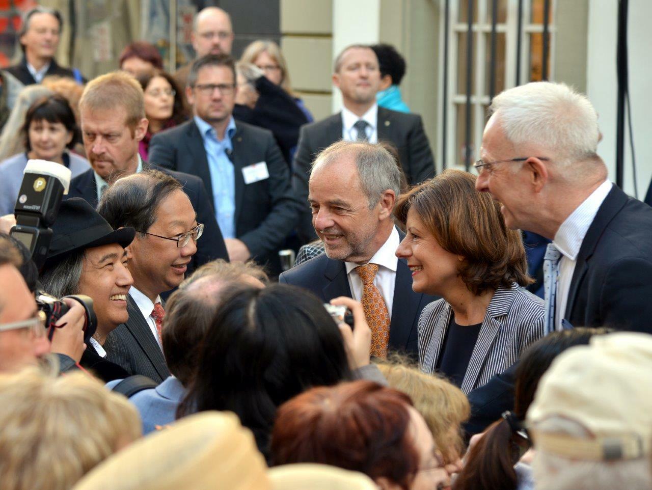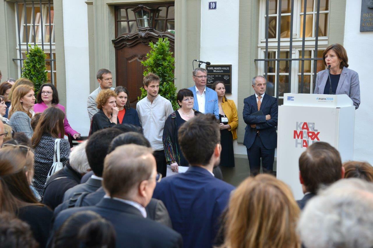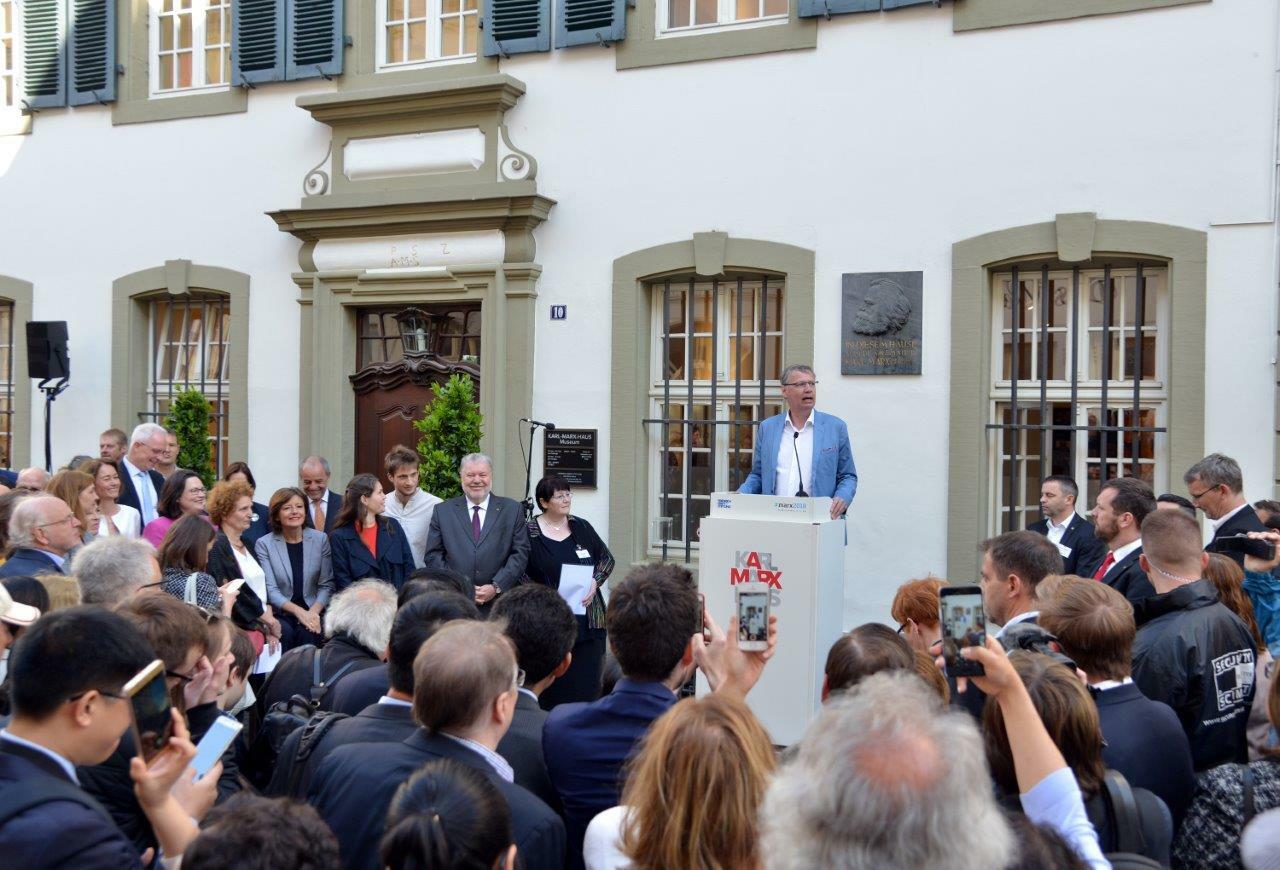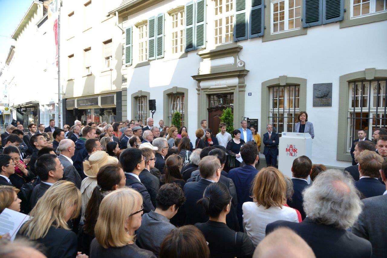 Mit einem großen Festakt vor dem Museum, bei dem unter anderen Günther Jauch, Kurt Beck und Andrea Nahles als Festredner zu den rund 300 Gästen sprachen, wurde das Karl-Marx-Haus am Samstagvormittag wiedereröffnet.