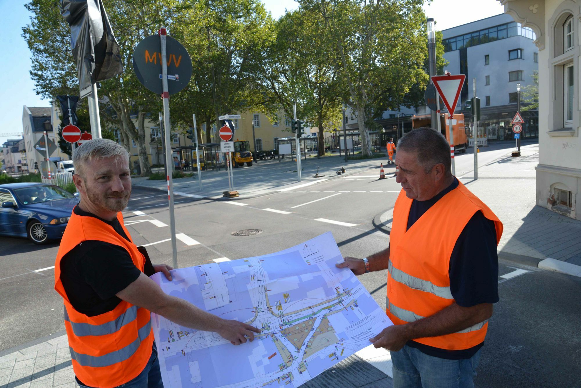 Nach knapp 17 Monaten Bauzeit und damit etwas früher als geplant sind die Bauarbeiten rund um den Nikolaus-Koch-Platz weitgehend abgeschlossen. Die Fahrbahnen sind fertig markiert, die neuen Schilder installiert.