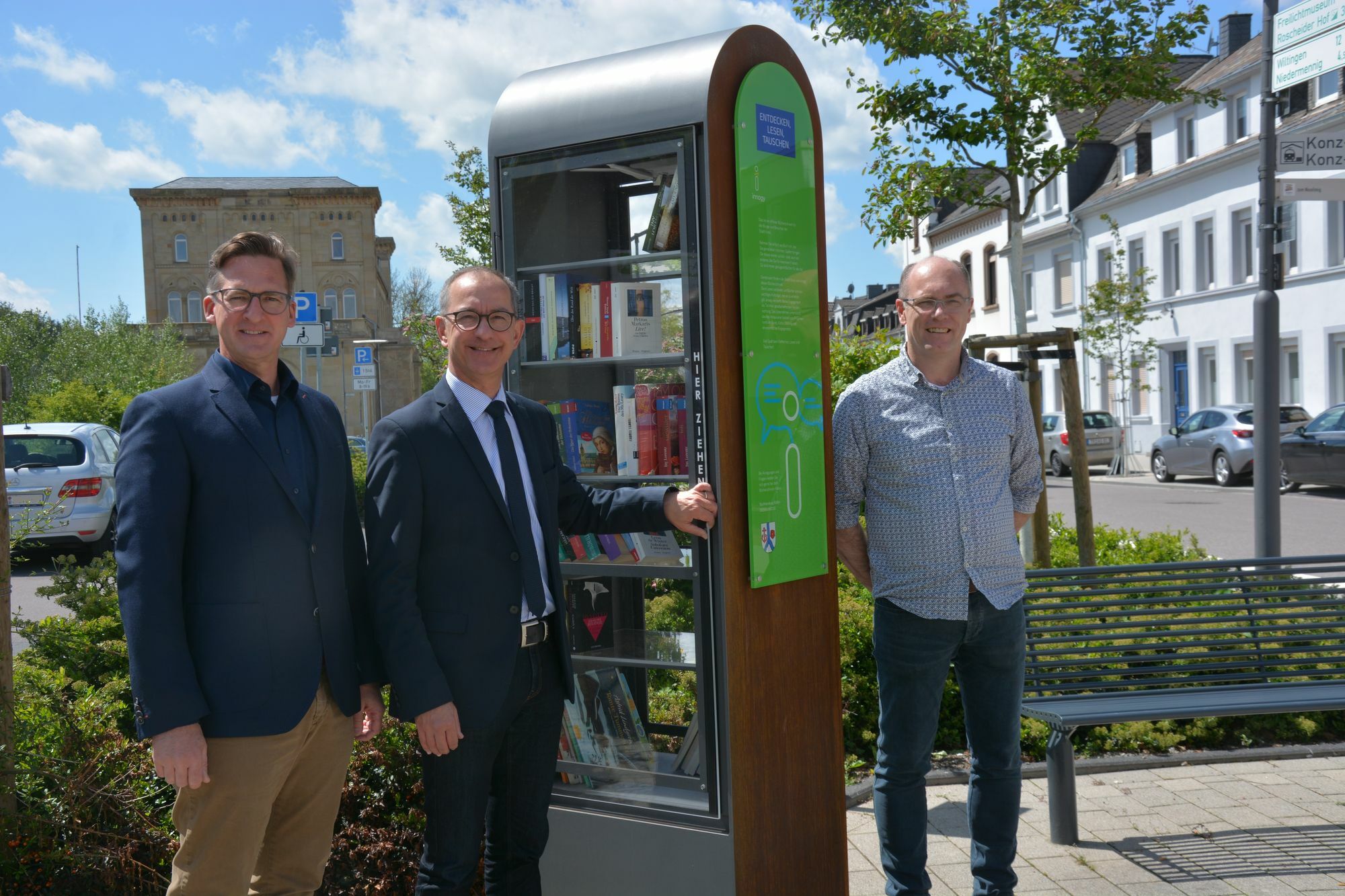 Allerdings konnte innogy das Tauschmöbel bereits in einer Blitzaktion reparieren. So schnell geht’s, wenn die Verbandsgemeinde Konz und alle Beteiligten gemeinsam an einem Strang ziehen. Der neue Bücherschrank konnte nun offiziell wieder eröffnet werden und steht den Bürgern ab sofort wieder zur Verfügung. "Es ist schade, dass sich offensichtlich einige Menschen immer wieder an öffentlichen Eigentum vergreifen und ihre Zerstörungswut ausleben wollen", erklärte Joachim Weber, Bürgermeister der Stadt und Verbandsgemeinde Konz. "Daher bin ich besonders froh, dass der Bücherschrank in einer Eilaktion renoviert werden konnte und wir diesen bereits wieder in Betrieb nehmen dürfen." Michael Arens, Leiter der Region Trier bei innogy, freute sich besonders, dass Anwohner bereits erste neue Bücher für den Bücherschrank abgegeben haben. "Das ist für mich der Beweis, dass die Konzer Bürger froh sind, dass der Bücherschrank wieder so schnell in Betrieb genommen wurde." Die Patenschaft für den Bücherschrank übernimmt erneut Hermann-Josef Kramp, Inhaber der Konzer Buchhandlung "Kolibri". Er kommt regelmäßig vorbei und bringt Ordnung in den Schrank. Der Bücherschrank nach dem Entwurf des Kölner Architekten Hans Jürgen Greve bietet Platz für ungefähr 320 Bücher. RED
