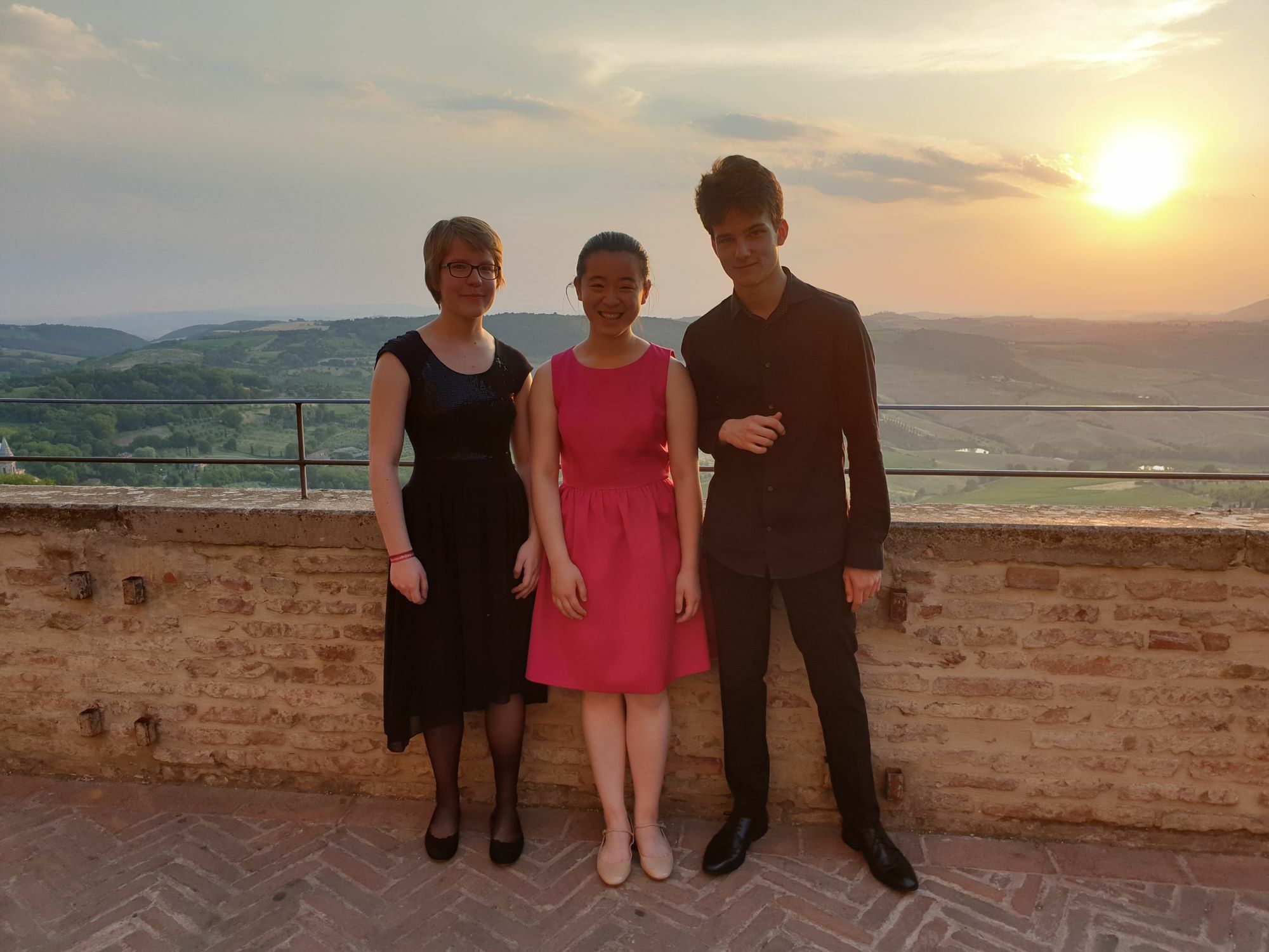 Das Trio Juvenis (Ferdinand Eppendorf/Violine, Lea Reutlinger/Violoncello, Michelle Woo/Klavier) fand sich im Jahr 2018 unter Jungstudenten der Kölner Musikhochschule zusammen. Direkt im darauffolgenden Jahr gewann es einen ersten Bundespreis beim Wettbewerb "Jugend Musiziert". Ein Meisterkurs mit Dozenten der Musikhochschule Köln/ Pre-College-Cologne führte es im vergangenen Juni nach Montepulciano, wo die drei Musiker mit Prof. Susanne Hasenauer (Violine), Prof. Sheila Arnold (Klavier) sowie Prof. Christian Brunnert (Cello) intensiv am D-Moll-Trio von Mendelssohn arbeiteten und es aufführten, welches auch im Kloster Karthaus zu hören sein wird. Dieses Trio ist ein absolutes Glanzstück der romantischen Kammermusik und fordert von den Interpreten höchstes technisches und musikalisches Können. Robert Schumann bezeichnete es als "Meistertrio der Gegenwart". Das Programm wird in der ersten Konzerthälfte ergänzt durch solistische Beiträge der drei jungen Künstler, die einen Bogen von der Klassik über hochromantisch virtuoses Repertoire bis zum Impressionismus spannen.