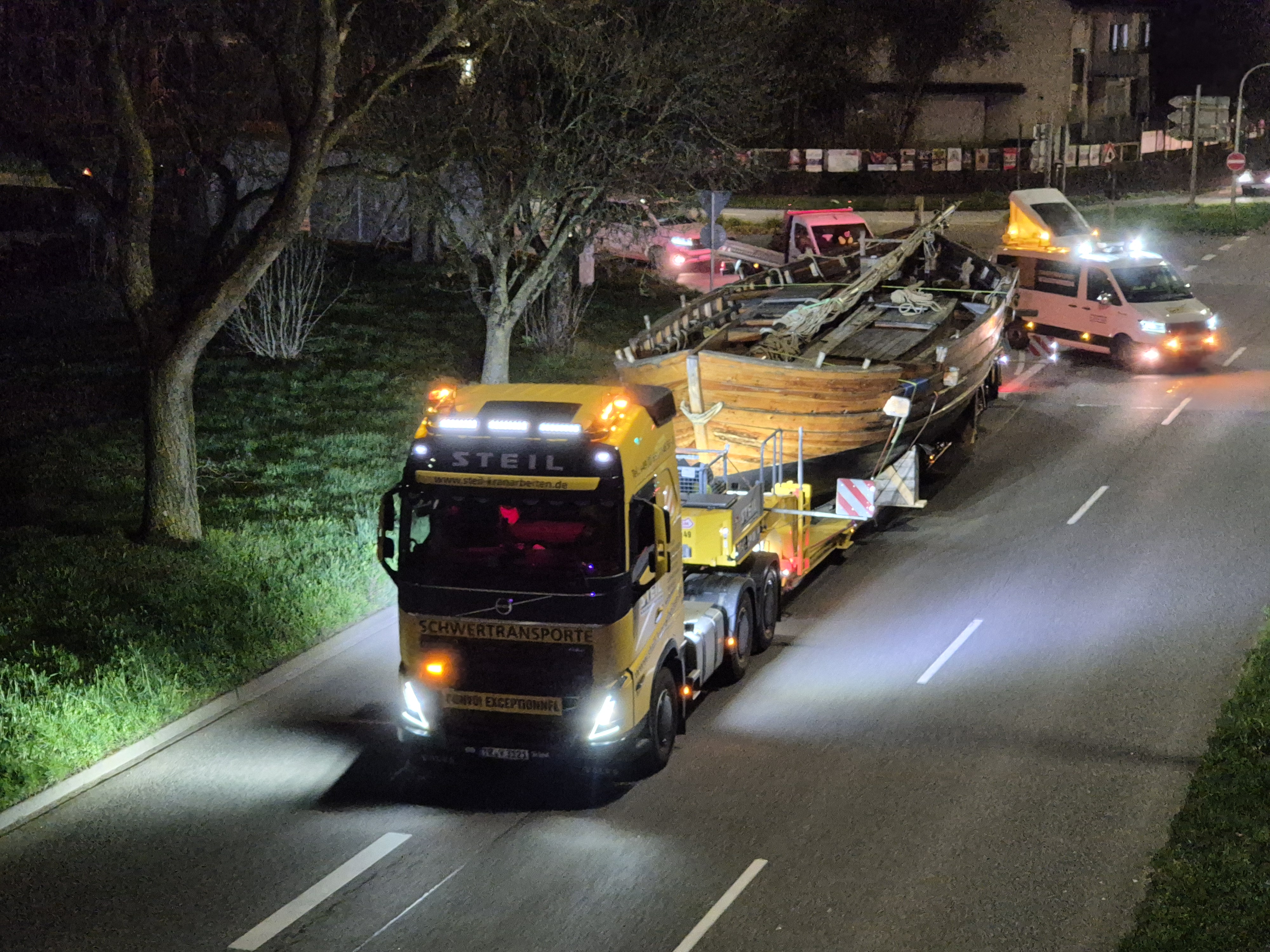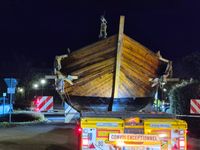 Der nächtliche Transport bot ein außergewöhnliches Bild: ein großes Schiff mitten auf den Straßen der Stadt. Begleitet von Polizei, Fachkräften und Universitätsangehörigen bewegte sich der Transport nur langsam vorwärts, besonders an engen und schwierigen Stellen wie Brückenübergängen oder schmalen Straßenabschnitten.