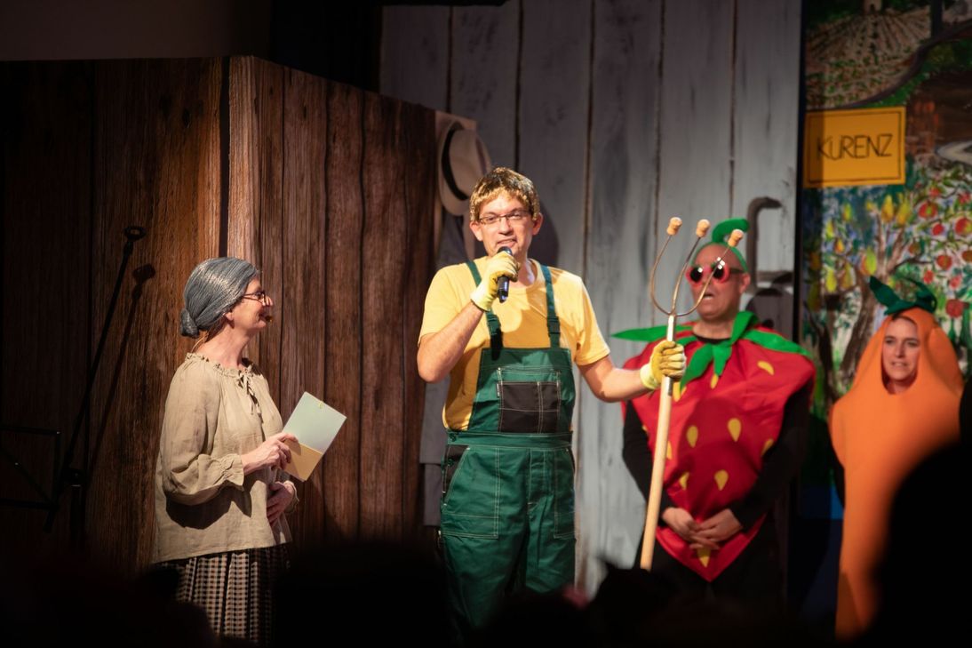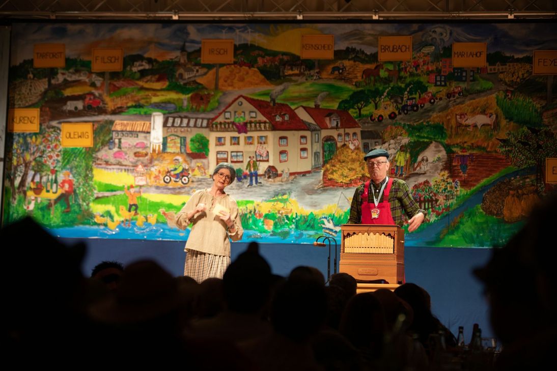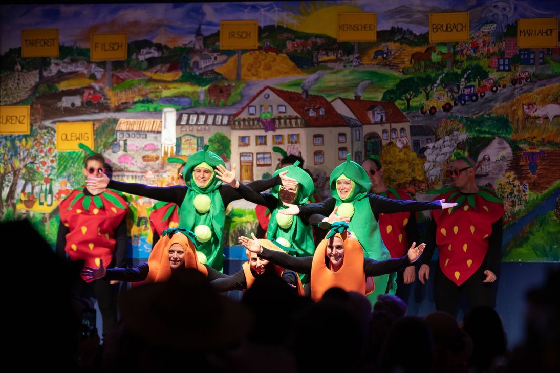 Mit dem ersten Teil der Showtanztriologie wurde der Abend eröffnet. Das Schauteil-Team zeigte in vertanzter Weise, dass doch noch einige Entscheidungen zu fällen sind - auch wenn der Entschluss gefasst wurde, Urlaub auf dem Bauernhof zu machen. Witzig, charmant und unterhaltsam führten die Moderatoren des Hoffestes, Gisela Bidinger, Oliver Hoffmann, Katja Lier und Melanie Münster, durch das kurzweilige Programm. Nach dem Tanz der Kindergarde besuchte das Trierer Prinzenpaar Harald III. und Marion II. das Hoffest. Vor dem zweiten Teil des Schauteils erzählte "Landwirtschaftsazubi" Constantin Albert von den Höhen und Tiefen eines Azubi und "Bauer August" (Josef Müller) hielt Ausschau nach der passenden Frau. Cary Albert und Ingrid Meunier schlüpften in ihrem Sketch in die Rollen der feinen Dame und des Bauerntrampels. Dass das Intensiv-Training für die Lachmuskeln weiter geführt wird, dafür sorgten Antje Gieche und Johannes Meyer in ihrem Vortrag "Tierarzt". Was ist Politik? Diese Frage stellten sich Constantin Albert und Hans-Karl Meunier in ihrem Sketch. Mitsingen, klatschen und tanzen, daran kam keiner vorbei, als die Zalawener Duckentchen auf der Bühne standen. Im Dancebattle der Ex-Garde und des Elferrates tanzten freche Erdbeer-Früchtchen gegen Erbsen und Möhren. Es hieß also Obst gegen Gemüse. Wie ging das Battle aus? Ganz einfach: Vegan! Dann betrat ein blökendes Schaf (Hans-Karl Meunier) die Bühne, doch dieses Schaf hatte mehr zu erzählen. So bekamen die Mitarbeiter des A.R.T. von dem Schaf ein dickes Lob für ihre Arbeit und die "Neujährchen"-Gegner ihre Schelte. Probleme mit dem backen einer Torte hatten Giesela und Claude in ihrem hervorragenden Gesangsvortrag. Modern und exakt zeigte die Wieweler Garde ihren Marschtanz. "Bauer sucht Frau" hieß es dann. Da sucht Olivia (Oliver Hoffmann) den Mann fürs eben und gerät an einen superschlauen Landwirt (Josef Arweiler), der seinen Hühner Smarties gibt, damit sie Ostereier legen. Ob sich hier eine wirklich die große Liebe anbahnt? Und auch der Hof für den Familienurlaub ist nach dem letzten Schauteil noch nicht festgelegt. Wohin sollen wir? Bauernhofurlaub mit Beautyfarm? Sport? Und einfach mit gutem Essen? Vielleicht kann die Dame von der Touristinformation weiterhelfen. Der letzte Schauteil brachte die Auflösung ehe die Duckentchen zum Finale riefen und dem Abschlusssong, gesungen von Melanie Münster, das gut fünfstündige Programm beendete. MV, Fotos: Valentin