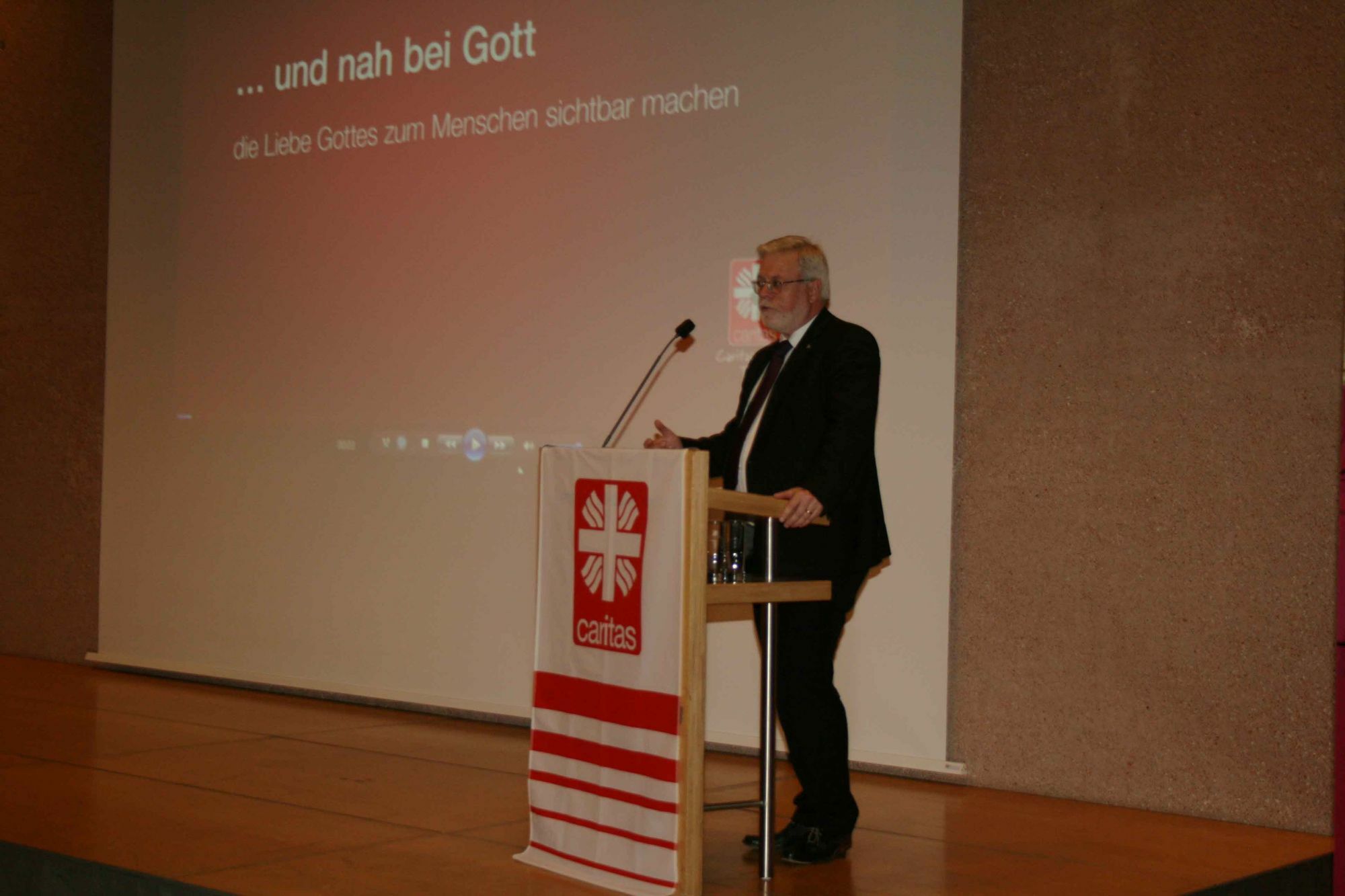 In seiner anschließenden Festrede griff Prof. Dr. Georg Cremer, ehemaliger Generalsekretär des Deutschen Caritasverbandes, einige Aspekte des Leitbildes auf und stellte sie in einen sozialpolitischen Kontext. So wies er beispielsweise auf das Spannungsfeld zwischen Leitsätzen und unternehmerischen Belangen hin, in dem Wohlfahrtsverbände ständig stehen. Weiter betonte Cremer die Rolle der Caritas als Anwalt für Menschen zu, die keine Stimme haben oder sich selbst nur schwer Gehör verschaffen können: "Die Caritas ist damit Akteur der Sozialpolitik und bewertet sozialpolitische Entscheidungen unter dem besonderen Fokus, wie sie auf Menschen wirken, die arm oder von gesellschaftlicher Teilhabe ausgeschlossen sind." Mit ihrem Netz von Beratungsstellen, Diensten und Einrichtungen habe die Caritas gute Voraussetzungen, als Seismograph für Notlagen zu wirken. Sein Fazit: "Wer den Armen helfen will, muss auch dafür sorgen, dass unser Sozialstaat eine breite politische Unterstützung in der Mitte der Gesellschaft behält. Dazu müssen wir über Probleme nüchtern und lösungsorientiert sprechen, aber einen Untergangsdiskurs vermeiden. Denn ein Untergangsdiskurs verstärkt Ängste und Panik in der Mitte und hilft dem Populismus, der unser demokratisches Gemeinwesen bedroht."