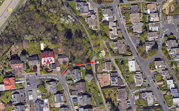 Ein weiterer Zeuge sah um 15:15 Uhr einen vermummten, dunkel gekleideten Mann, der sich von dem Anwesen entfernte und schließlich das Wohngebiet verließ. Sein mutmaßlicher Weg ist auf der angehängten Karte eingezeichnet.