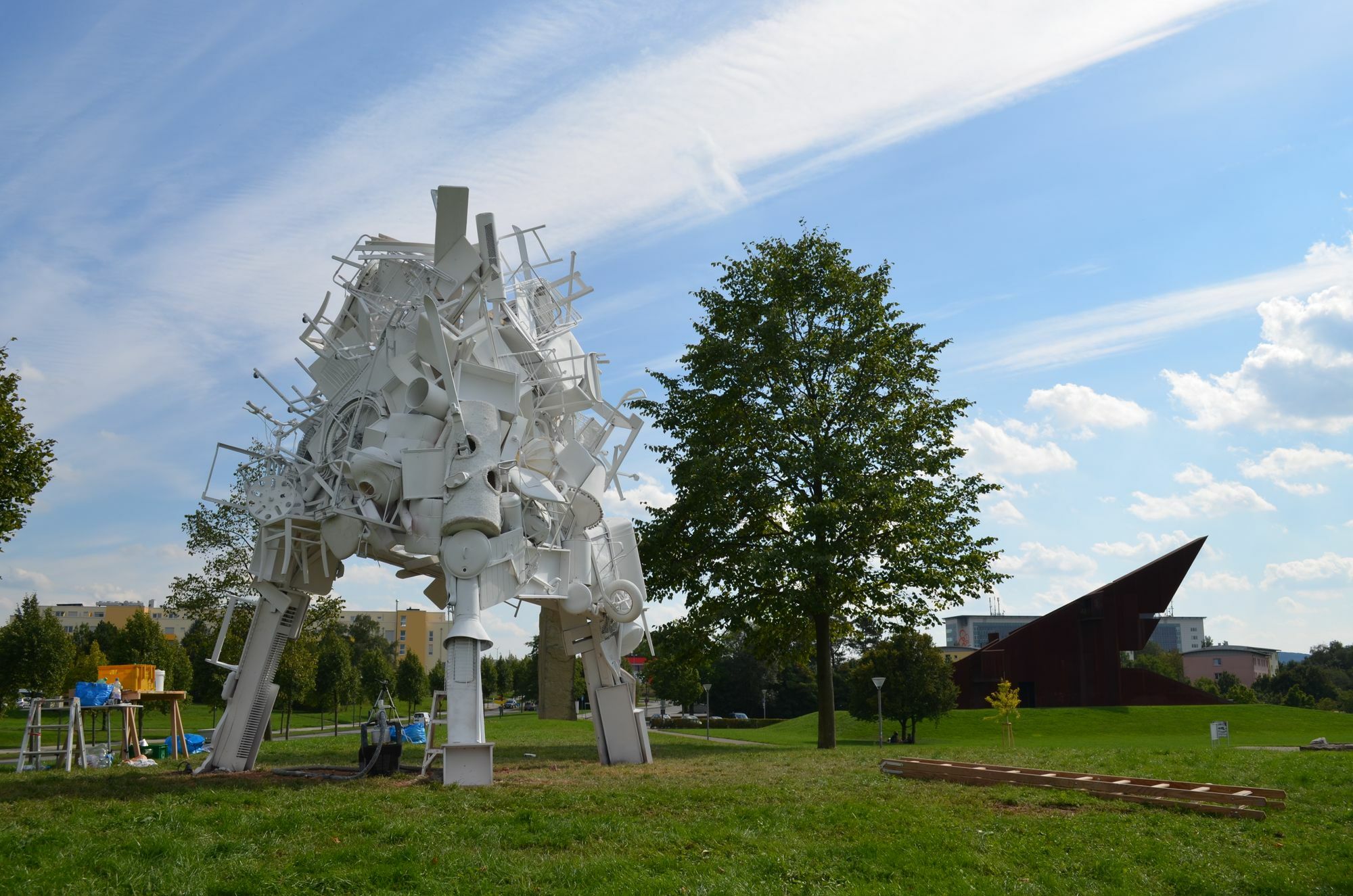 Ins Auge fällt vor allem die aus ausrangierten Gebrauchsgegenständen aufgetürmte Skulptur des Mainzer Künstlerduos Polybros in Sichtweite und Kontrast zum Turm Luxemburg. Weiß eingefärbt entfalten Fahrräder, Stühle und Lampenschirme ganz neue grafische Qualitäten. Zwei weitere Objekte wurden von den Einzelkünstlern Till Hausmann und Daniel Janzarik im weiteren Verlauf der Allee Richtung Wissenschaftspark errichtet. Der Verein "Kunstdünger" hatte Künstler zum Einreichen von Entwürfen aufgerufen. Eine Jury wählte die drei Projekte aus. Finanziert wurden sie durch Vereinsmitglieder, Sponsoren, Spenden und das Land Rheinland-Pfalz. Mehr zum Verein gibt es hier. CN