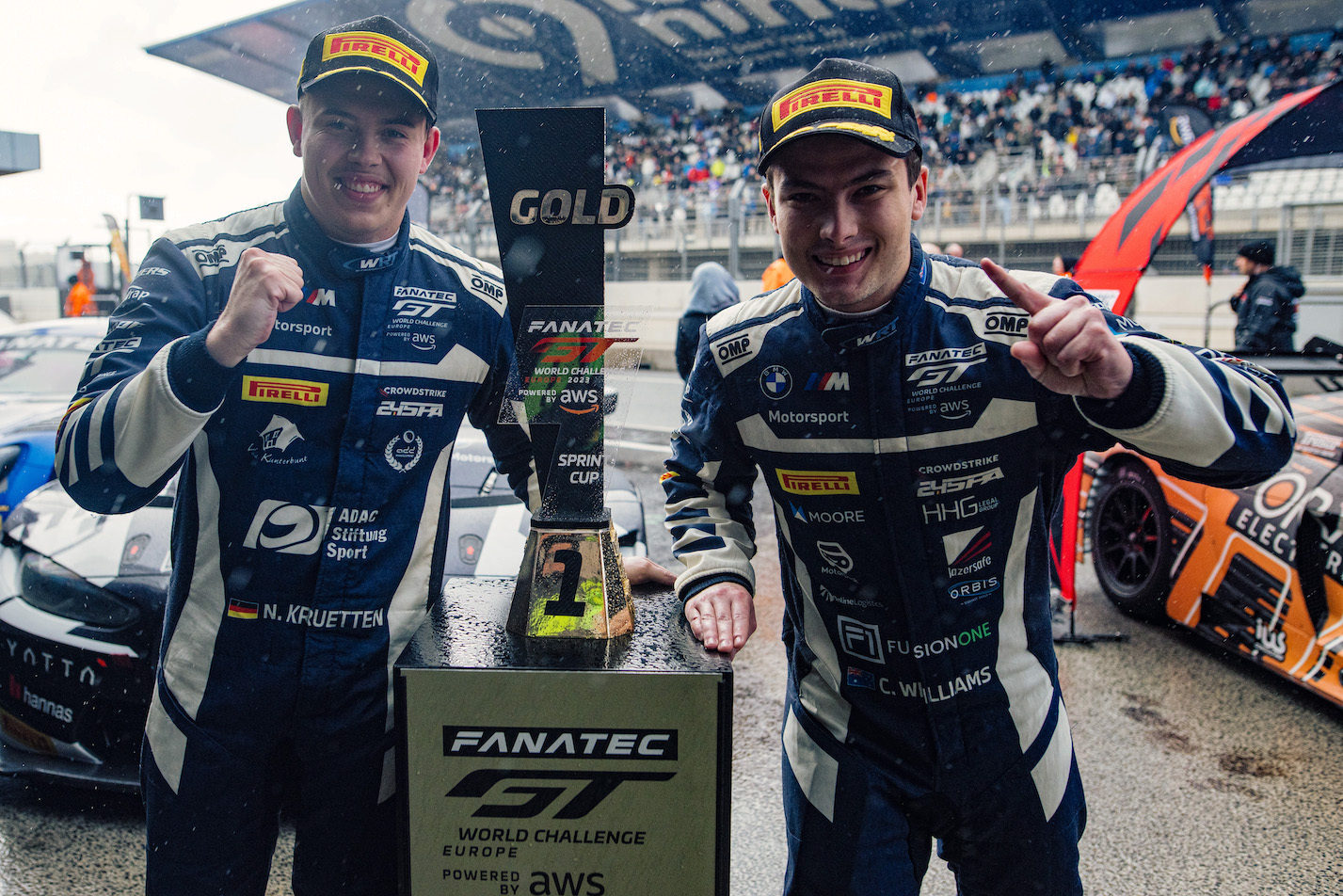 Das Team begann das erste Rennen des Wochenendes auf der 4,259 Kilometer langen Strecke an der niederländischen Nordseeküste von Rang zwei in ihrer Klasse. Im bis zu 590 PS starken BMW M4 GT3 ging Krütten bei bewölktem Himmel und kühlen Temperaturen von zwölf Grad Celsius als Startfahrer ins Rennen. In einer turbulenten Anfangsphase zeigte er Nervenstärke. Nachdem er von einem Kontrahenten ins Kiesbett abgedrängt wurde, kämpfte er sich vom hinteren Teil des Feldes auf den zweiten Platz im Gold Cup zurück. Nach 26 gefahrenen Minuten kam Krütten auf dem Silberrang liegend an die Box und übergab das Steuer an seinen Teamkollegen Williams. Der Australier ging im Laufe seines Stints in Führung und überquerte als schnellstes Gold Cup-Fahrzeug die Ziellinie. Jedoch warf eine Strafe wegen eines Verstoßes gegen eine Safety-Car-Regelung das Duo in der Rangliste auf den dritten Platz zurück.Williams startete am Sonntag nach einem sehr starken Qualifying bei ähnlichen Wetterbedingungen von der Pole-Position im Gold Cup und Rang zwei in der Gesamtwertung in den finalen Lauf der Saison 2023. Zu Beginn des Rennens verteidigte sich der Australier erfolgreich gegen seine Kontrahenten und fuhr bei einsetzendem Regen kurz vor dem Boxenstopp sogar auf Platz eins vor. Zur Rennmitte übernahm Krütten in Führung liegend das Steuer und bewies bei wechselhaften Streckenbedingungen eine schnelle Pace und beeindruckendes Fingerspitzengefühl. Der 20-Jährige nutze seine Routine und fuhr taktisch stark, um auf der nassen Strecke keine Fehler zu machen und sicherte am Ende eines turbulenten Regenrennens Gesamtplatz drei sowie den Klassensieg für das Fahrzeug mit der Nummer 30. Durch die sehr gute Punkteausbeute beim Finale feierte das Team den Meistertitel im Gold Cup der Fanatec GT World Challenge Europe.
