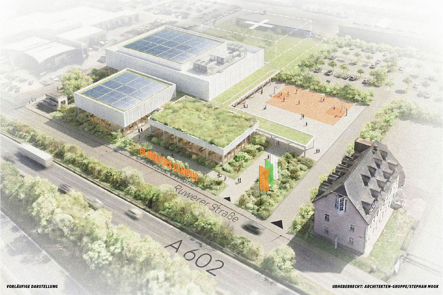 Die erste Bundesliga-Saison der Gladiatoren neigt sich ihrem Ende zu und mit dem frühzeitig erreichten Klassenerhalt kann bereits die Planung für die nahe Zukunft des Clubs beginnen. Das wohl größte Projekt der weiteren Club-Entwicklung wird der Gladiators Sport Campus, dessen Bau im Frühjahr 2027 beginnen soll. Auf einem etwa 17.500 Quadratmeter großen Grundstück an der Ruwerer Straße 17 im Trierer Norden entsteht dann ein eigenes Trainingszentrum für die Profimannschaft der Gladiatoren, welches ebenfalls die Büros der Trainer und Mitarbeiter sowie weitere Infrastruktur für einen optimalen Trainingsbetrieb beherbergen wird. Der Campus befindet sich damit nur rund zwei Kilometer von der Spielstätte am Fort-Worth-Platz entfernt.