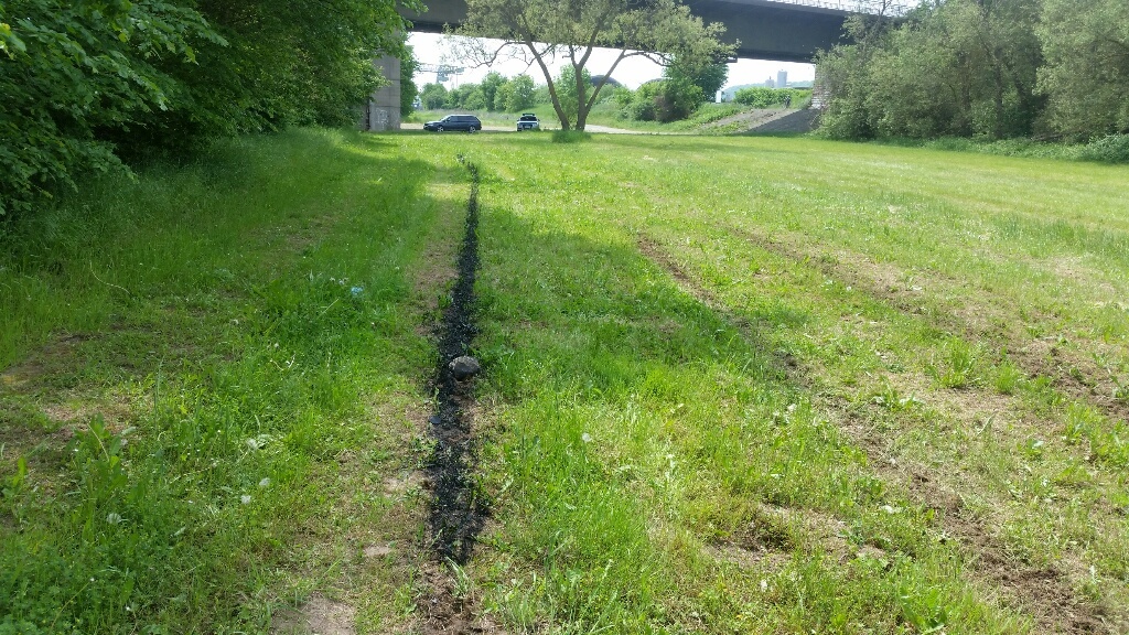Der Auto, bei dem es sich vermutlich um einen dunklen Golf IV handelt, riss sich die Ölwanne an einem Stein auf der Wies auf und führte seine Fahrt mit stark beschädigter Ölwanne fort. Hierdurch lief bereits auf der Wiese der Großteil der Ölwanne leer. Der PKW fuhr schließlich über den Radweg entlang des ART-Geländes in Richtung Trier-Ehrang (Hafen) und blieb in Höhe des ART-Geländes liegen. Bis dorthin wurde eine weitere schwächere Ölspur verursacht. Der Fahrradweg musste durch eine Spezialfirma gereinigt werden. Bezüglich der verschmutzen Wiese wurden die zuständige Stelle in Kenntnis gesetzt.