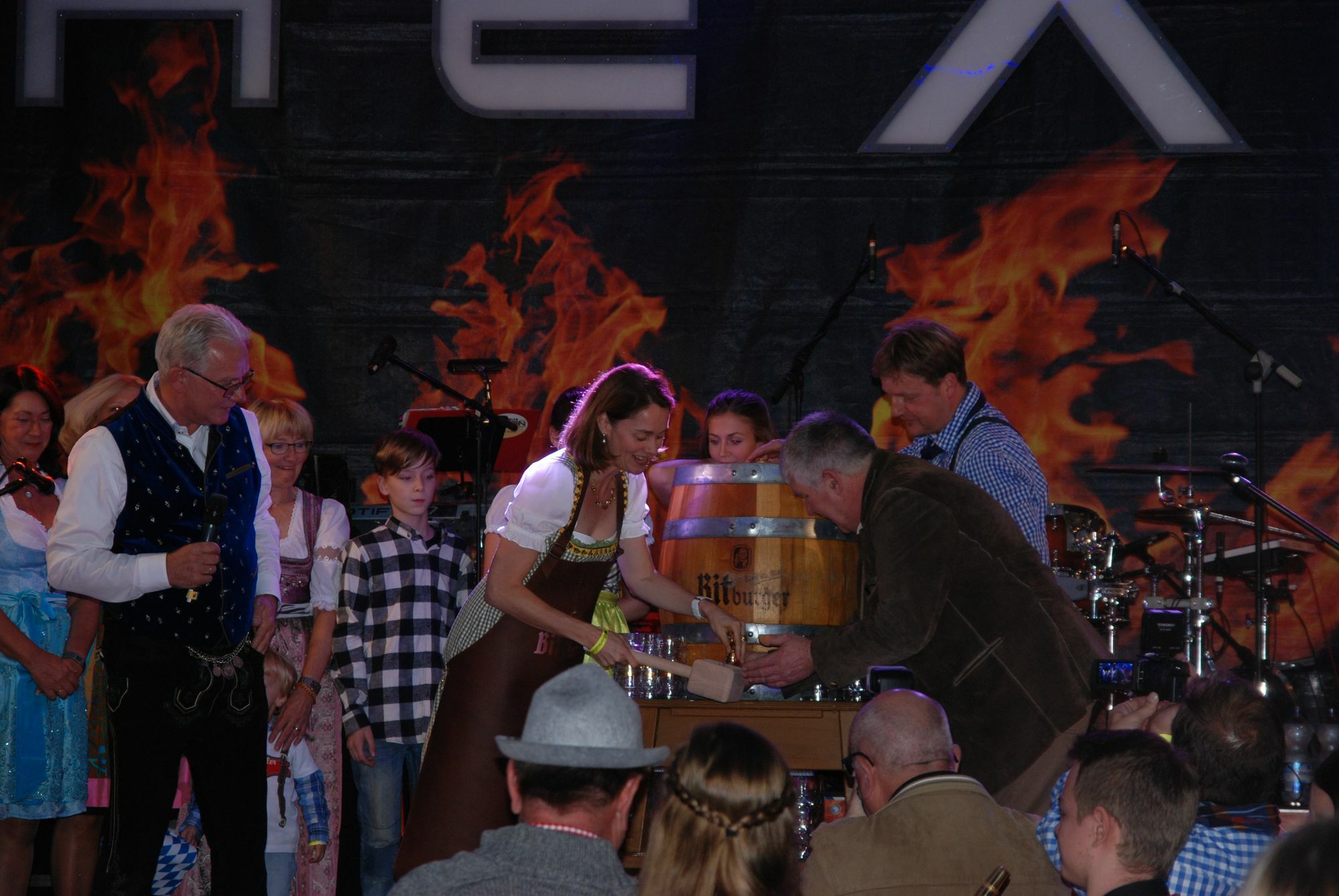 Am heutigen Freitagabend begann das Rioler Oktoberfest 2016 am Freizeitsee Triolago mit dem Fassanstich durch die Schirmherrin der Veranstaltung, der Generalsekretärin und Trierer Bundestagsabgeordneten der SPD, Katarina Barley, nach einer kurzen Ansprache des Veranstalters Hans-Jürgen Lichter. Mit der passenden Blaskapelle begann das Fest standesgemäß. Bei hervorragendem Essen und Bier aus dem traditionellen Maßkrug schunkelten sich die zahlreichen Gäste ein, bis bald die Isartaler Hexen als Künstlerinnen des Abends auftraten. Die achtköpfige, ausschließlich aus Frauen bestehende Gruppe präsentierte ein stimmungsvolles Potpourri aus Volksmusik und Schlager von Wolfgang Petry über Andreas Gabalier bis hin zum selbst komponierten Liedgut, das das ganze mit Liebe zum Detail geschmückten Zelt zum Schunkeln brachte. Kommende Programmpunkte auf der Rioler Wiesn Die Rioler Wiesn, die insgesamt elf Tage lang läuft und somit noch zahlreiche Gelegenheiten zu einem Besuch bietet, wartet mit einem umfangreichen Programm für jeden Tag der Öffnung auf. Neben zahllosen anderen Künstlern und Bands wird sicherlich Schlagerstar Peter Wackel, der am vierten November auftritt, heiß erwartet. Weitere Infos gibt es hier. MR, Fotos: Reimer