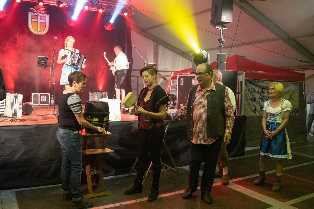 Gleichzeitig stellte der 1. Vorsitzende Michael Schmitt die Prinzessinnen der kommenden Session vor: Jenny I. und Tanja I., das erste weibliche, gleichgeschlechtliches Prinzenpaar in Rheinland-Pfalz. Zusammen mit Oberbürgermeister Wolfram Leibe stießen sie auf die Session und das Oktoberfest an. Bereits nach wenigen Minuten brachte die Band "Marc Boesen And Friends" das ausverkaufte Festzelt zum Kochen. Bis in den frühen Morgen wurde in Pfalzel gefeiert, getanzt, geschunkelt und laut