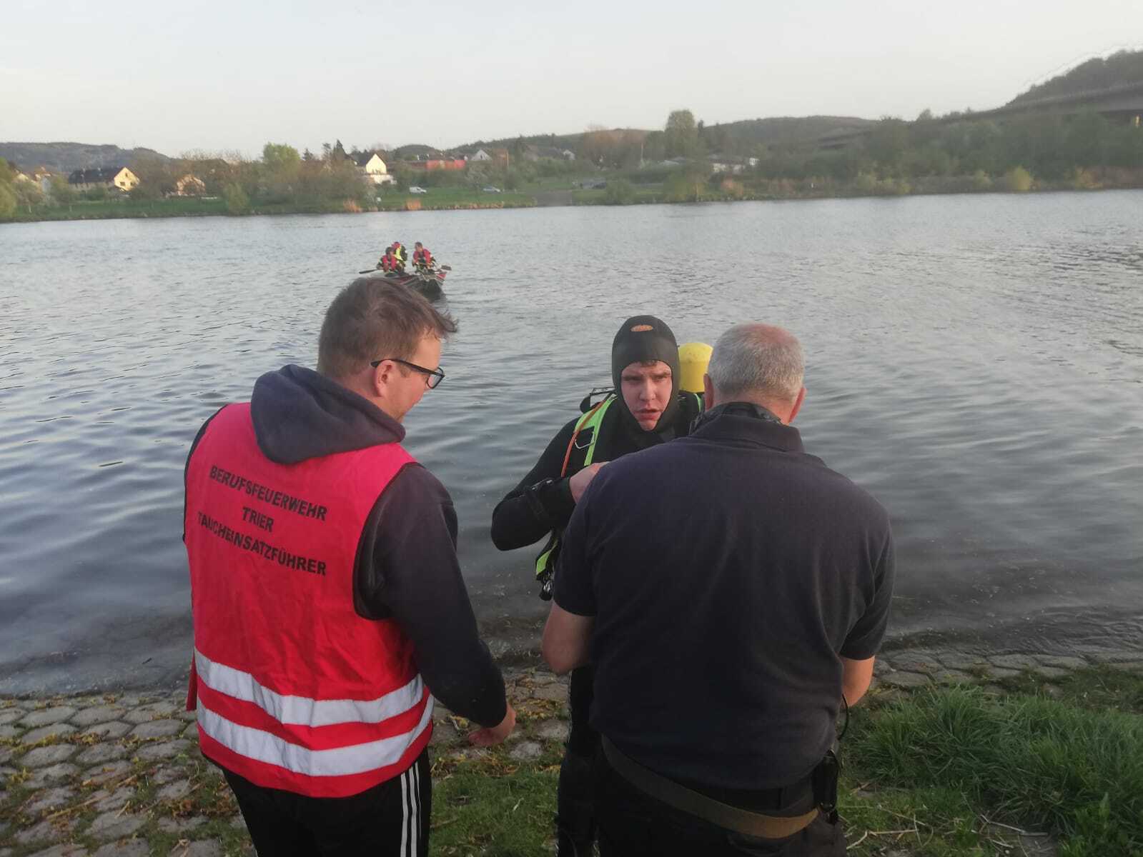 Die Taucher der Berufsfeuerwehr Trier suchten die Mosel und das nähere Umfeld ab. In einigen Meter Tiefe wurden sie dann fündig: Auf dem Grund fanden sie einen Motorroller. Er wurde mit Hilfe einer Seilwinde aus dem Fluss geborgen. Die Polizei konnte kurze Zeit später mitteilen, dass der Motorroller schon vor einiger Zeit als gestohlen gemeldet wurde. Gegen 21.30 Uhr wurde die Suche eingestellt, da davon ausgegangen wurde, dass sich keine Person im Wasser befand.