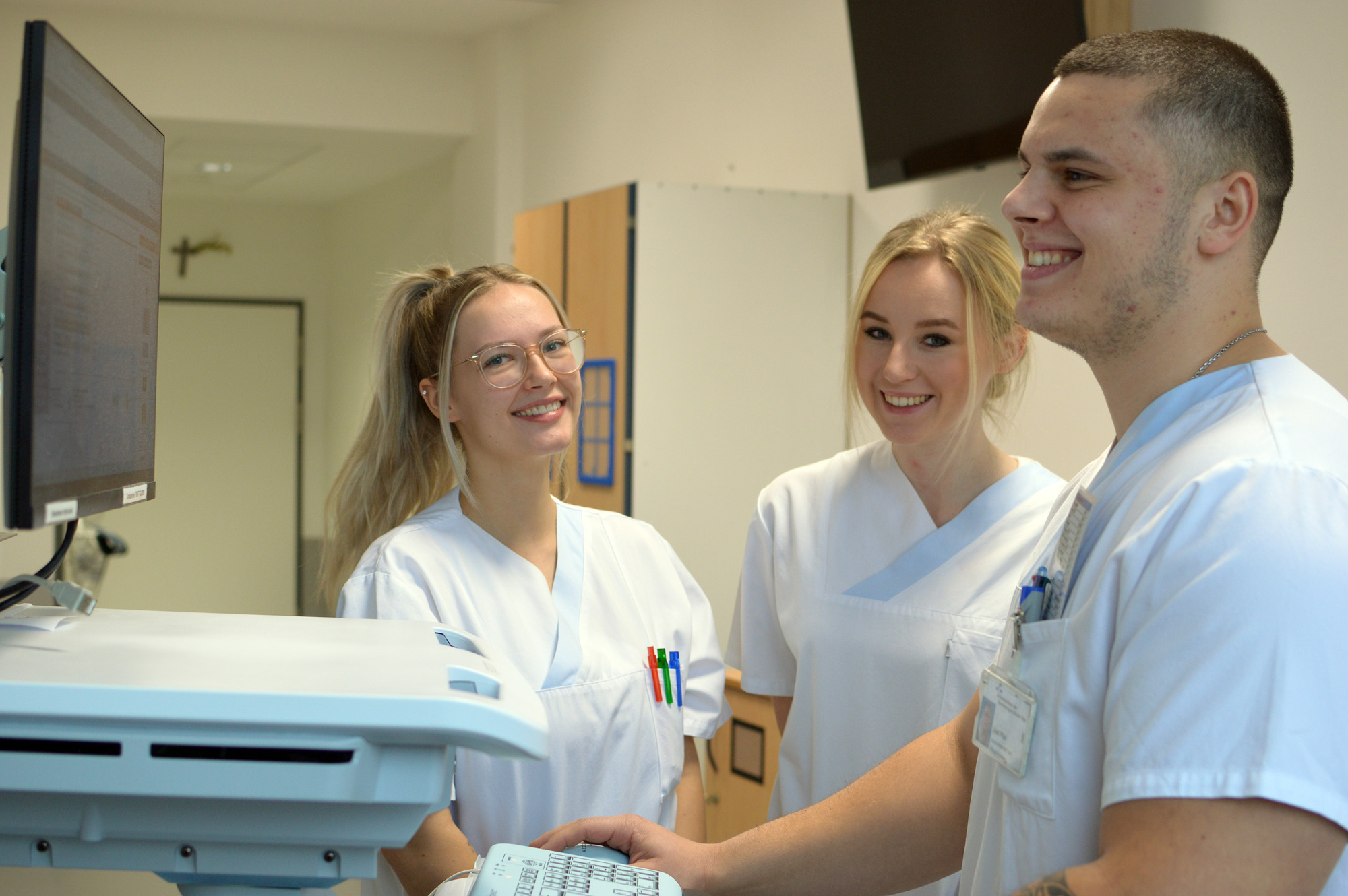 Tatsächlich bringen die 18 angehenden Pflegefachfrauen und -männer aus ihren bisherigen praktischen Einsätzen auf verschiedenen Stationen schon vielfältige Erfahrungen in der Behandlungspflege sowie bei einzelnen Pflegetätigkeiten mit. Das Neue: Auf der Ausbildungsstation werden sie nun mit der gesamten Komplexität einer Bereichspflege und der Versorgung einer Patientengruppe sowie einer Station unter bestmöglichen Bedingungen konfrontiert. So können sie ihr umfassendes Wissen nun optimal in die Praxis umsetzen. Weitere positive Nebeneffekte der Ausbildungsstation: Das sogenannte "Onboarding" ins spätere Berufsleben als examinierte Pflegefachperson wird erleichtert und die Auszubildenden können sich auf das bevorstehende praktische Examen bestmöglich vorbereiten. Denn das steht schon im März kommenden Jahres an.