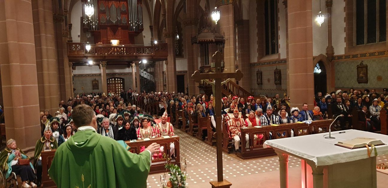 Da die Pfarrei dieses Jahr ihr 450. Jubiläum feiert, haben sich die Verantwortlichen entschlossen, auch diese Messe in einem größeren Rahmen zu feiern. So waren neben dem Schweicher Karnevalsverein und den Stadthusaren Schweich sowie dem Isseler Kulturverein auch Karnevalsvereine mit ihren Prinzenpaaren aus der gesamten Umgebung anwesend. Farbige Scheinwerfer haben eine stimmungsvolle Atmosphäre hervorgerufen und musikalisch war neben der Orgel auch eine Band unter der Leitung von Dekanatskantor Johannes Klar zu hören. Joachim Wagner trug stimmgewaltig mehrere zum Gottesdienst passende Lieder vor. Die Kollekte erfolgte für das soziale Projekt des Trierer Stadtprinzenpaares, das ebenfalls anwesend war. Am Ende des Gottesdienstes dankte Pastor Hildesheim allen Verantwortlichen und Aktiven, besonders dabei dem zweiten Vorsitzenden des Kirchengemeinderates Schweich, Joachim Wagner, der der Motor für dieses besondere Projekt war. RED, Fotos: Veranstalter