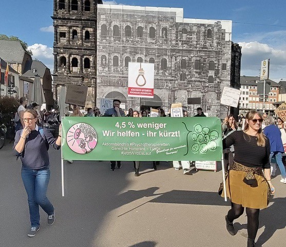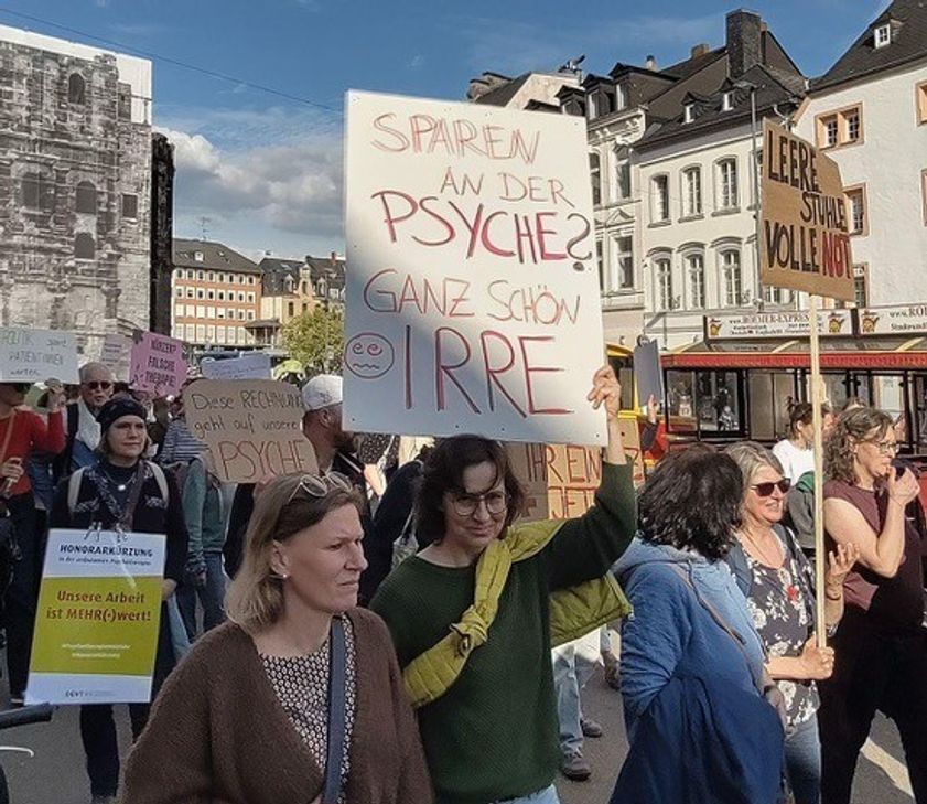 Bundesweit demonstrierten am Mittwoch, 15. April, tausende Psychotherapeuten, Patienten und Unterstützer gegen Kürzungen in der ambulanten Psychotherapie.