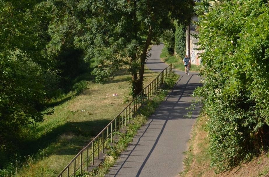 Der Radweg auf der westlichen Moselseite ist sanierungsbedürftig. Die Deckschicht hat teils Schlaglöcher und teils erhebliche Buckel. Auf einem Teilstück besteht er aus Pflastersteinen und einem Betonrandbalken mit einer stellenweise nicht ungefährlichen Fuge dazwischen. Der Beton ist abgeplatzt, Pflastersteine sind durch Baumwurzeln verschoben.
