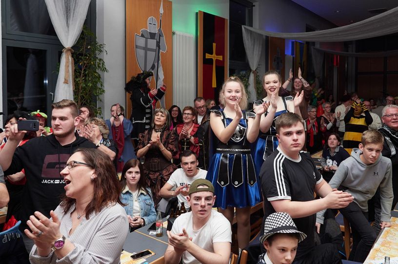 Um 20.11 eröffnete Sitzungspräsident Andreas „Wüsti“ Weist die Kappensitzung in der ausverkauften Kulturhalle Reinsfeld. Das Prinzenpaar „Stephan I aus dem Treawelara Land“ und „Sonja I vom Sauerstrand“ begrüßten das närrische Publikum, in dem sich passend zum Motto viele Rittersleut und Burgfräulein befanden. Und auch die Deko konnte sich sehen lassen. Die Rock- und Pop-Band „New Vintage“ aus dem Trierer Land „mit Reinsfelder Einschlag“ sorgte für Stimmung. Pator Kai Georg Quirin erzählte, dass er mit einem Brennholzverleih einen Haufen Asche gemacht habe und 1, 75 Euro Gage pro 100 Gramm bekomme. Das Reinsfelder Burgfräulein (Michaela Lieser) erzählte von ihren Erfahrungen mit Rittern aus den Nachbargemeinden und entzog alle Orte im Hochwald einer eingehenden Prüfung. Als Gastvereine traten die Karnevalsvereine aus Grimburg und Greimerath samt ihrer Prinzenpaare auf. Zum Abschluss brachten die Mitglieder des Männerballetts Sixpack das Publikum mit ihrem Tanz zum Toben, inklusive einer kleinen Hommage an den Monty Python-Filmklassiker „Ritter der Kokosnuss“.