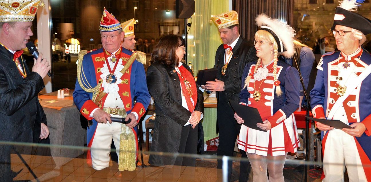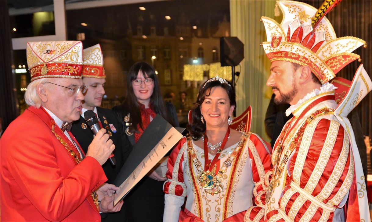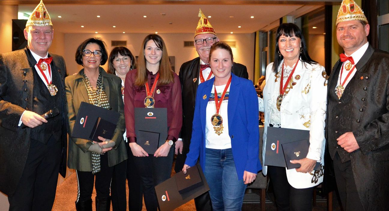 Mit dem Verdienstorden des Landesverbandes Rhein-Mosel-Lahn (RML)im Bund deutscher Karneval (BDK) wurden Werner und Ulrike Feltes sowie Jürgen und Heike Schlich von der Prinzenzunft der Stadt Trier durch den Präsdienten des Landesverbandes RML Peter Pries ausgezeichnet.