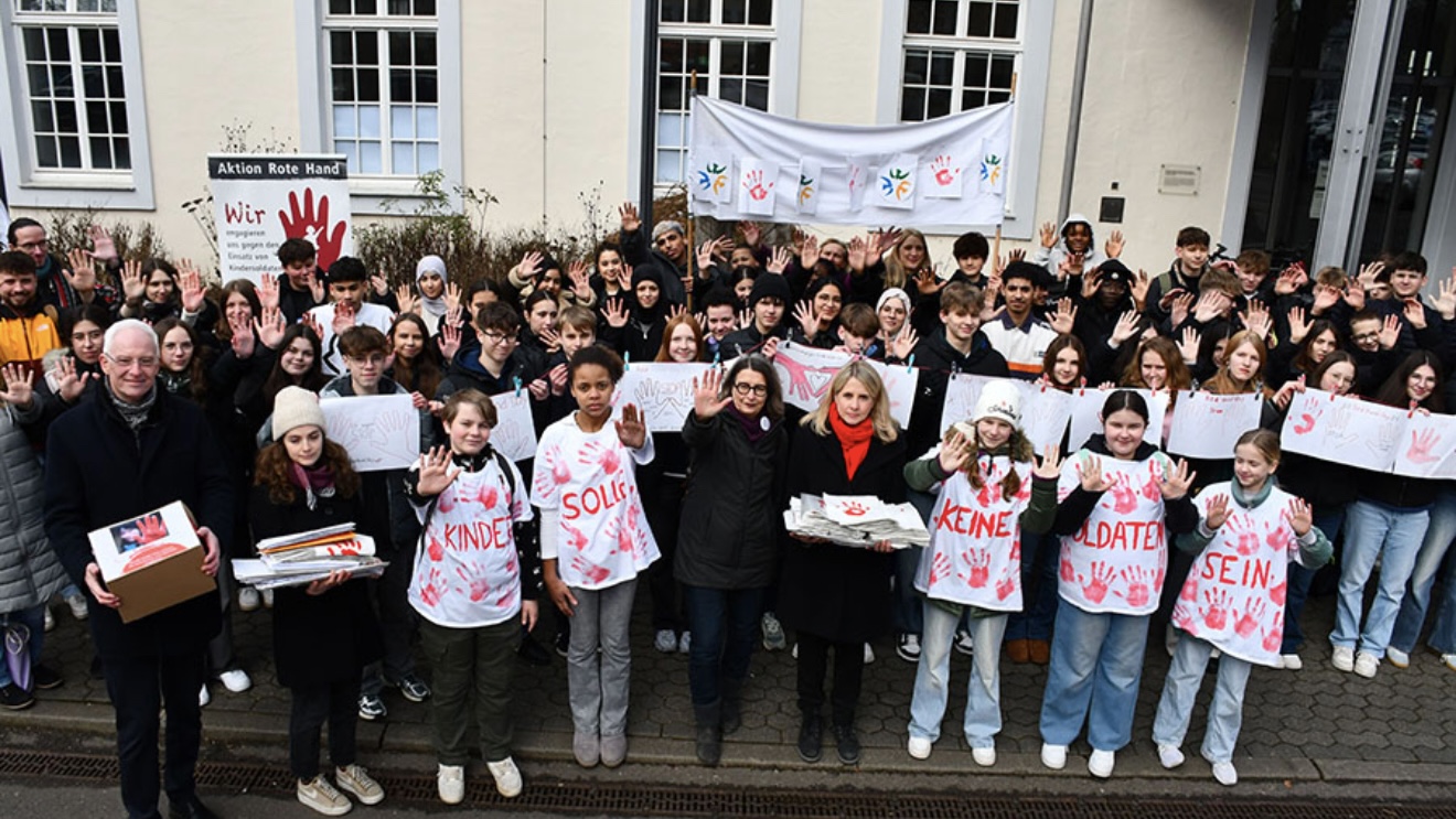 Auch in Trier beteiligten sich zahlreiche Schülerinnen und Schüler an der Aktion und setzten damit ein klares Zeichen gegen den Missbrauch von Kindern in Kriegen.