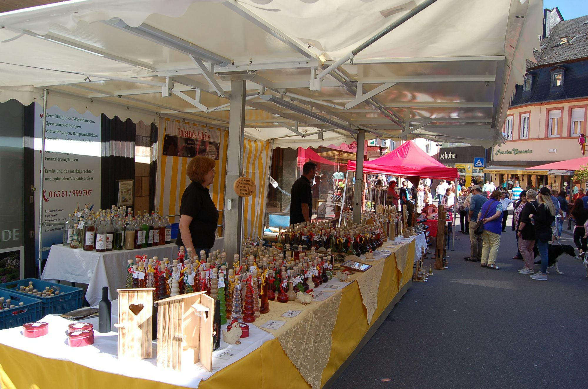 Am Nachmittag herrschte Hochbetrieb in der autofreien Innenstadt. Neben den geöffneten Fachgeschäften gab es zahlreiche Marktstände mit Dekorationsartikeln oder Frühlingsblumen und Buden mit vielen verschiedenen Leckereien. Auch aus dem benachbarten Saarland kommen regelmäßig Marktleute zu solchen Veranstaltungen. Vanessa Rabus von der Ölmanufaktur Saarlouis erzählte: "Wir sind jetzt schon zum fünften Mal in Saarburg dabei. Es zieht uns immer wieder her!" Kleine Besucher freuten sich über das Karussell und auf den Terrassen der örtlichen Gastronomie herrschte dank strahlendem Sonnenschein ein reges Treiben. Für musikalische Unterhaltung sorgten unter anderem der Musikverein Saarburg-Beurig und Egon. DT, Fotos: Thiesen