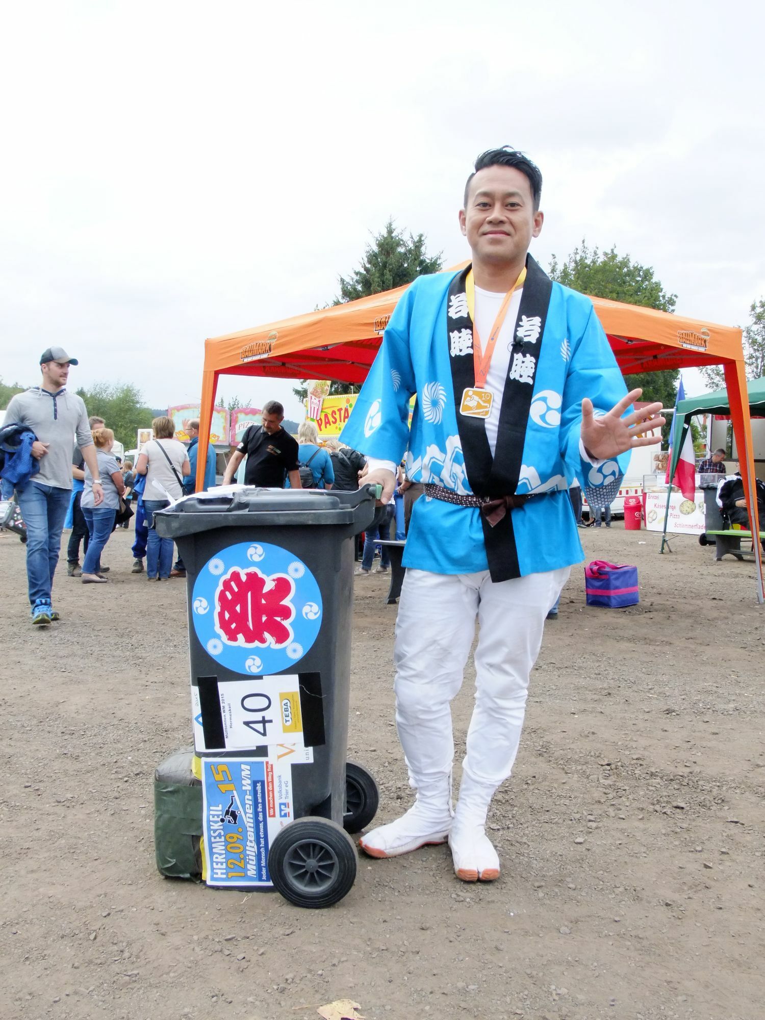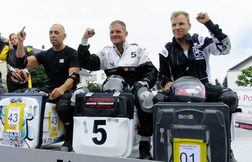 Stephan Kunz ist neuer Weltmeister im Mülltonnenrennen. Der 38-jährige Bundeswehrsoldtat aus dem Saarland setzte sich am Samstag bei der Weltmeisterschaft im Mülltonnenrennen in Hermeskeil gegen mehr als 40 Konkurrenten aus sechs Nationen durch. Zweiter wurde Lokalmatador Ralf (Charlie) Schröder noch vor dem Vorjahressieger Normal Schäfer aus dem Saarland. Unter den Wettkämpfern war auch der in seiner Heimat Japan beliebte TV-Star Daysuke Miyagawa, der im Rahmen seiner Sendung "Let's challenge the world" ebenfalls den Sprint auf der Mülltonne wagte. Er qualifierte sich jedoch nicht für das Finale.