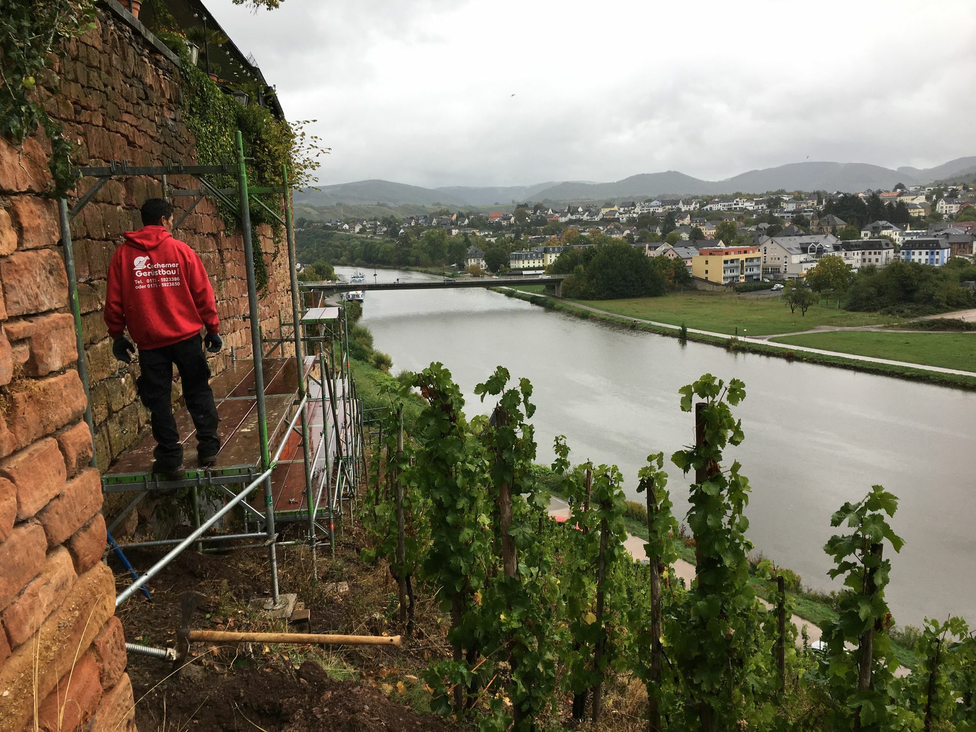 Der Bauausschuss des Saarburger Stadtrats hat Anfang September entsprechende Aufträge für Gerüstbau- und Maurerarbeiten erteilt. Bei dem renovierungsbedürftigen Stadtmauer-Abschnitt handelt es sich um das Teilstück unterhalb des katholischen Pfarrhauses bis hin zur Grabenstraße. Der Zustand des Mauerwerks ist mangelhaft und einzelne Steine lösen sich, weshalb Handlungsbedarf besteht.