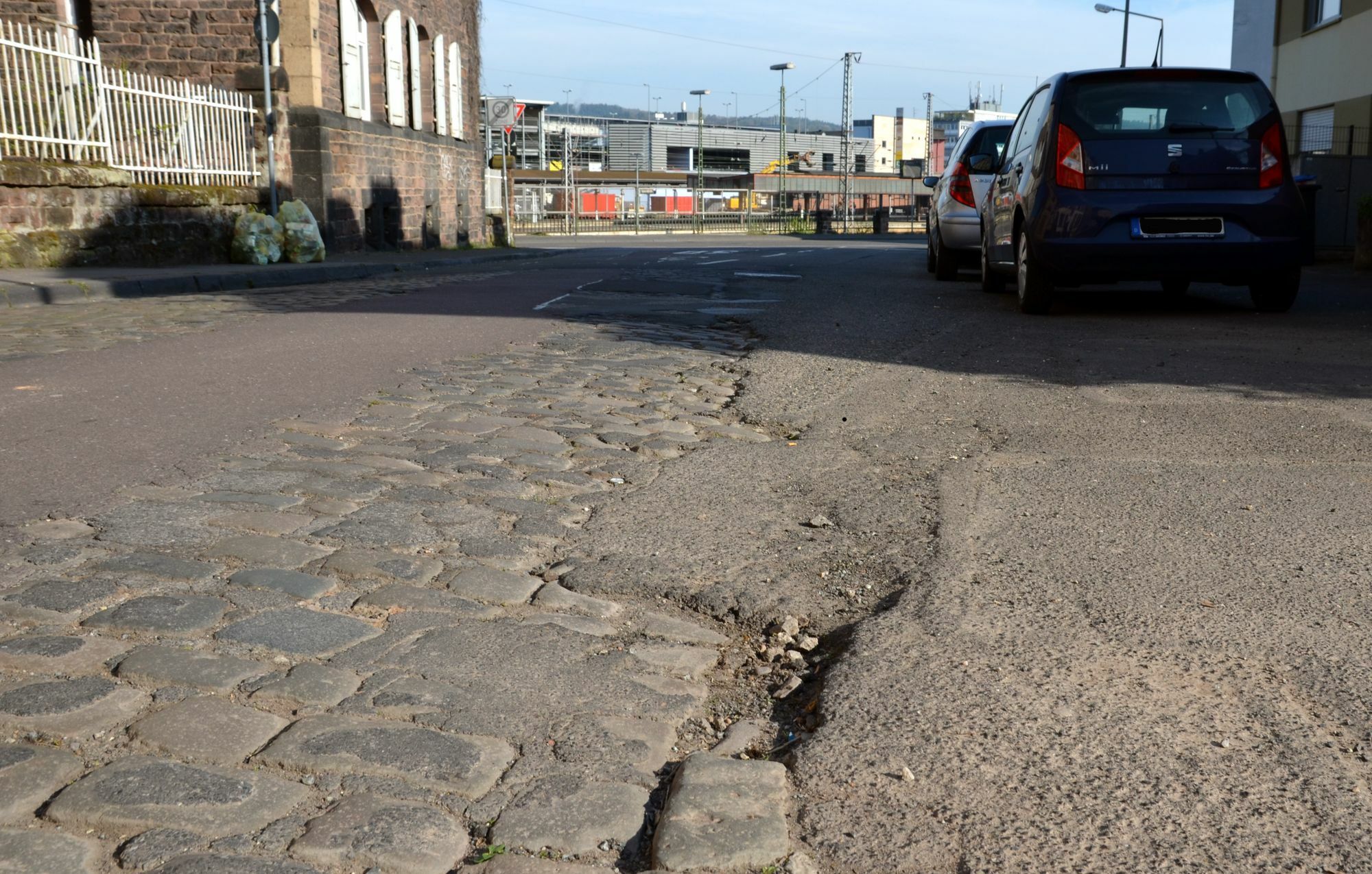 Die Kurfürstenstraße in Trier-Ost gleicht einer Kraterlandschaft, sowohl am Straßenrand ...