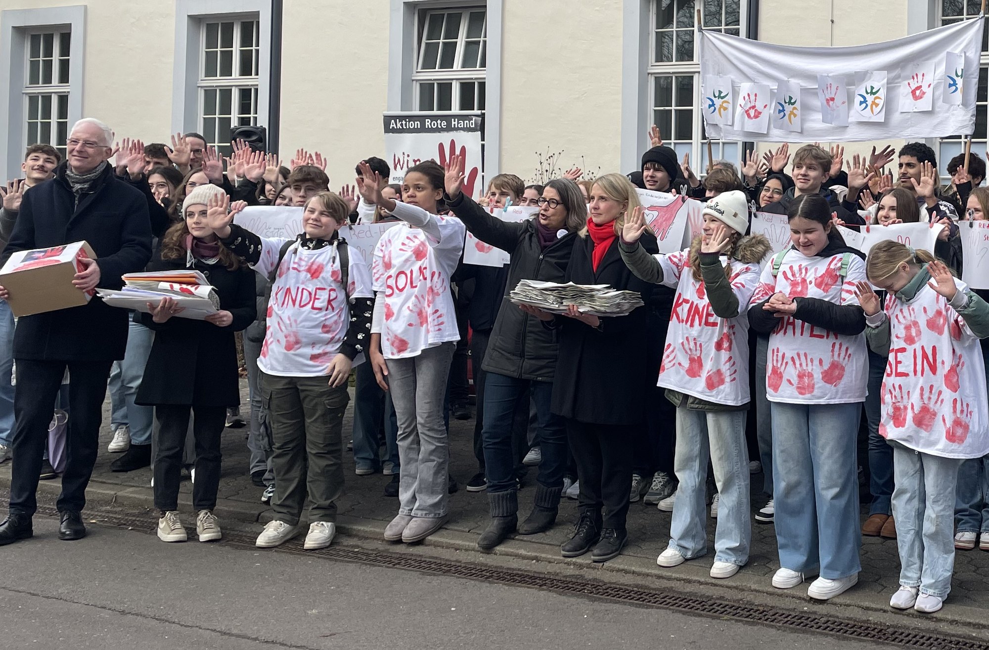 Jährlich am 12. Februar macht der Red Hand Day weltweit auf das Schicksal von Kindersoldaten aufmerksam. In Trier hisste Oberbürgermeister Wolfram Leibe gemeinsam mit Schülerinnen und Schülern verschiedener Schulen die symbolträchtige rote Hand-Flagge vor dem Rathaus. Die Aktion soll das Bewusstsein für den Missbrauch von Kindern und Jugendlichen in bewaffneten Konflikten schärfen und politischen Druck für Veränderungen erzeugen.