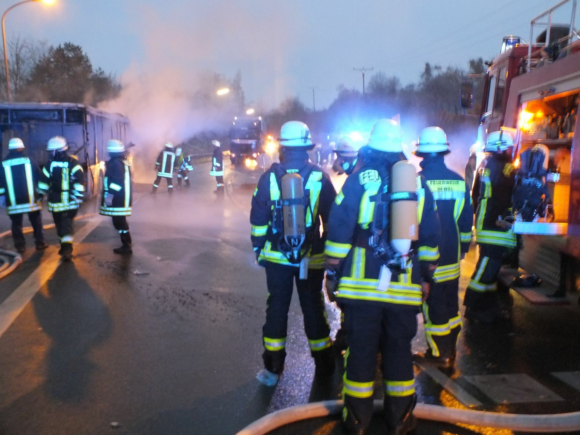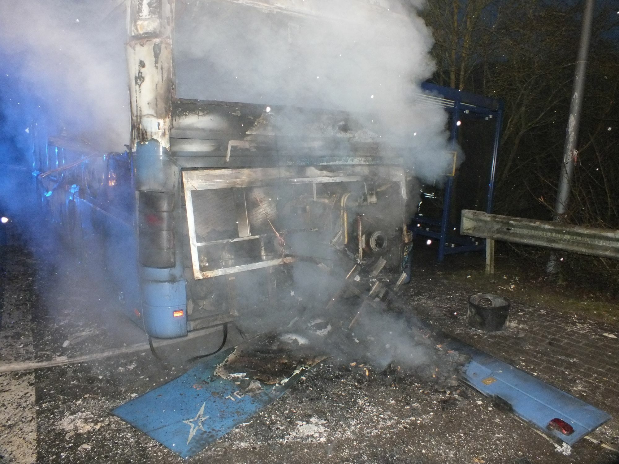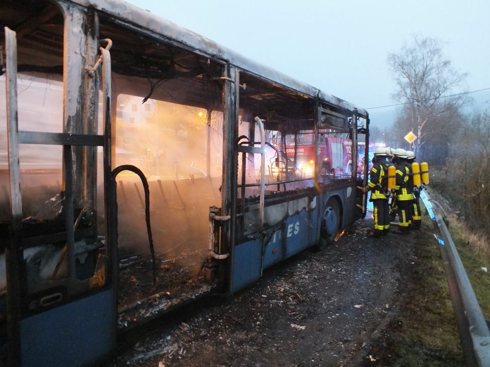 Ein Schulbus ist am 19. Februar gegen 7 Uhr in Flammen aufgegangen. Der Fahrer konnte sich rechtzeitig aus dem Bus retten. Verletzt wurde niemand.