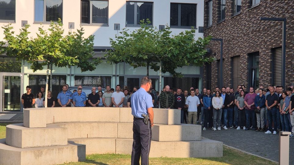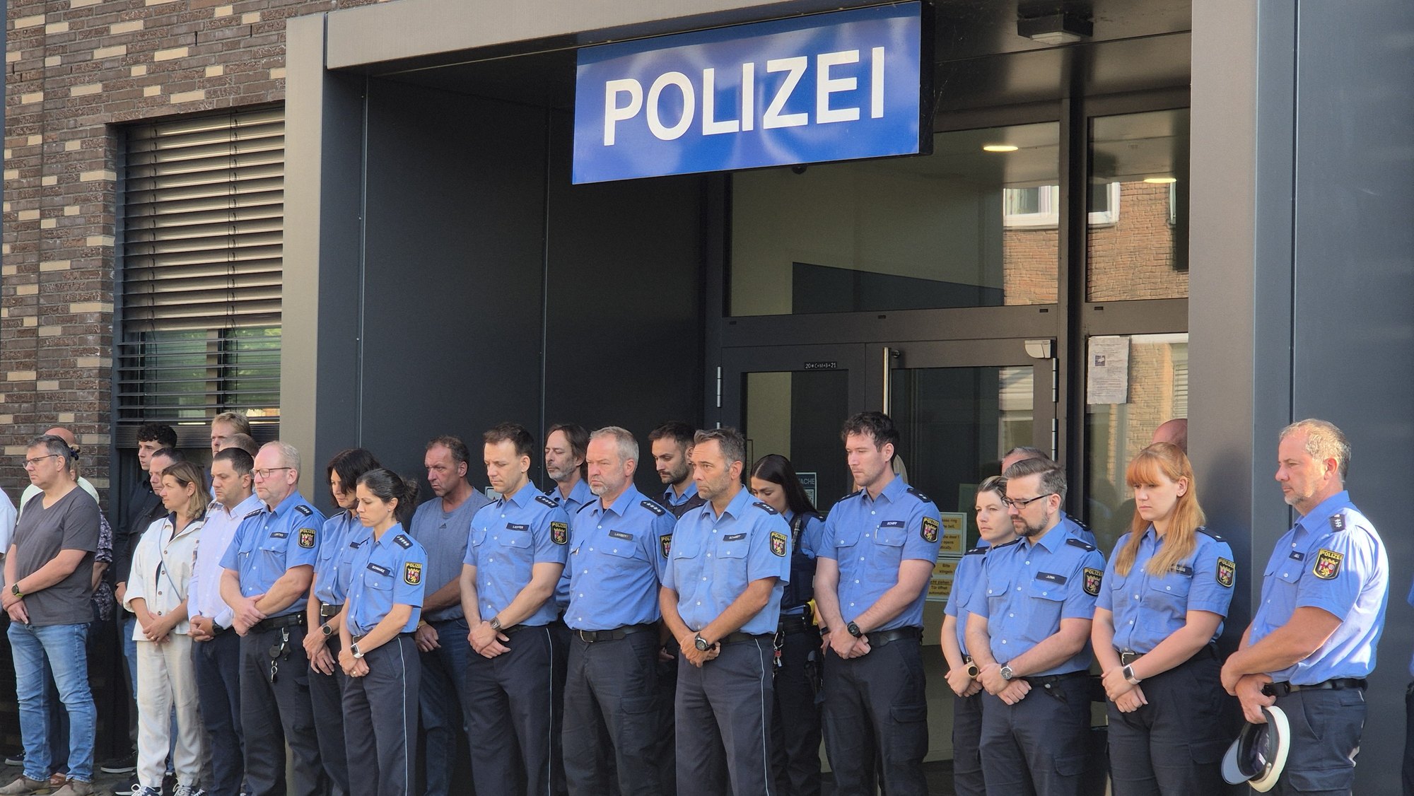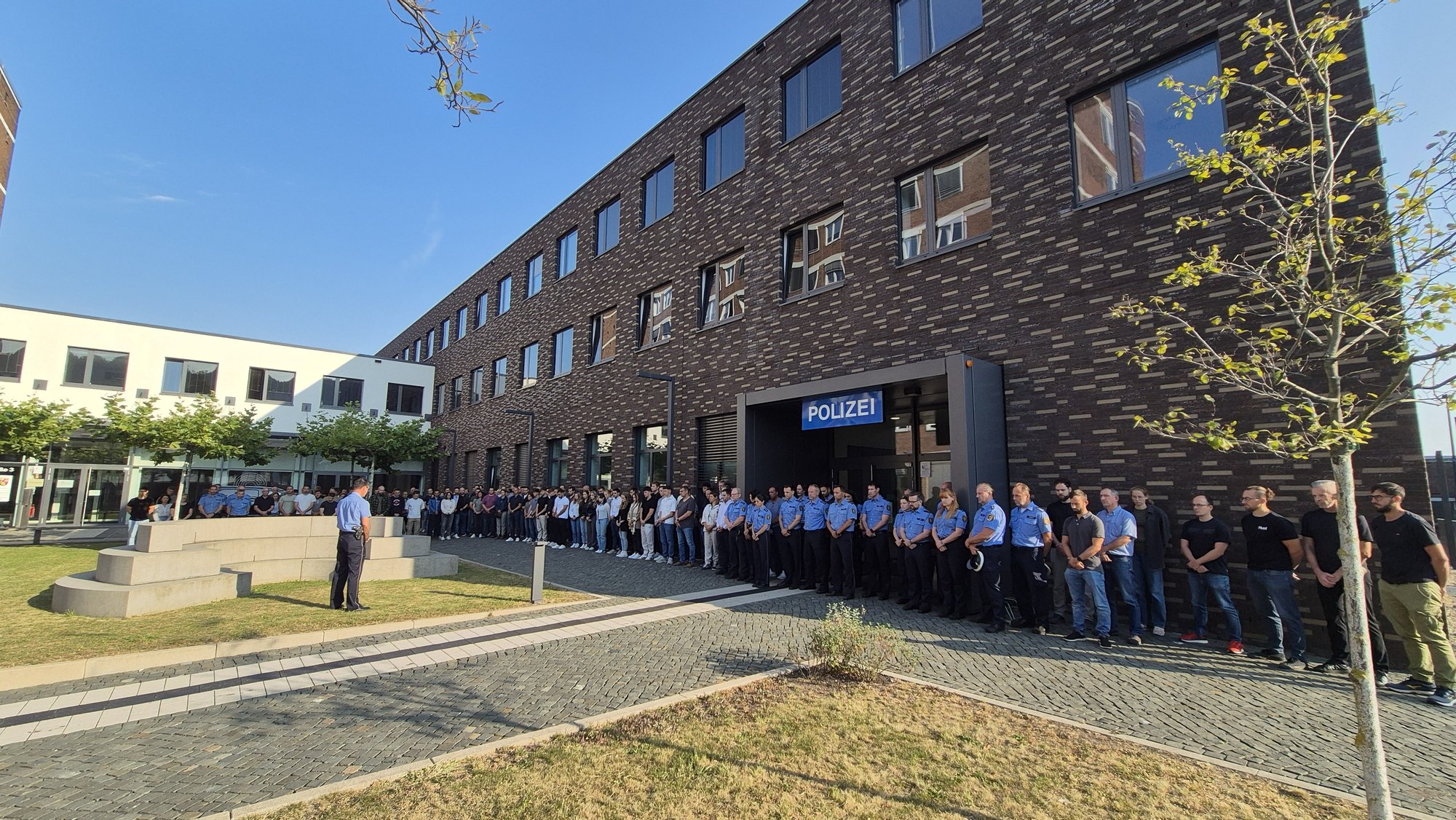 Vor dem Polizeipräsidium am Bahnhof versammelten sich am Montagmorgen um 9 Uhr zahlreiche Polizeikräfte und Mitarbeitende. In stillem Gedenken erwiesen sie dem 34-jährigen Kollegen die letzte Ehre. Auch alle Polizeiinspektionen in der Region hielten inne. Streifenwagen stoppten, wo es möglich war, für eine Minute den Dienst. Zudem fahren derzeit alle Polizeifahrzeuge mit schwarzem Trauerflor.