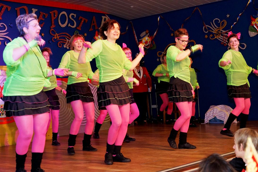 Das Salz in der Suppe jeder Karnevalsveranstaltung sind die schwungvollen Show- und Gardetanz-Auftritte. Zauberhaft waren dabei die tanzenden "Irischen Kobolde" der Jugendgarde auf ihrem Weg zum Ende des Regenbogens. Die Prinzengarde lieferte einen einstudierten Gardetanz. Dass Tanz und Spaß einander ergänzen, zeigte auch Solomariechen Sophie Wiedemann und die Tanzformation "Special Guests" mit einer vergnüglichen 80er-Jahre-Show. Für einen Stimmungshöhepunkt sorgten wieder die Deutschen Vizemeister im Männerballett "Asseler Schneeflöckchen". Das Publikum war von dem mehrfach preisgekrönten Tanz "Stimmen im Kopf" begeistert.