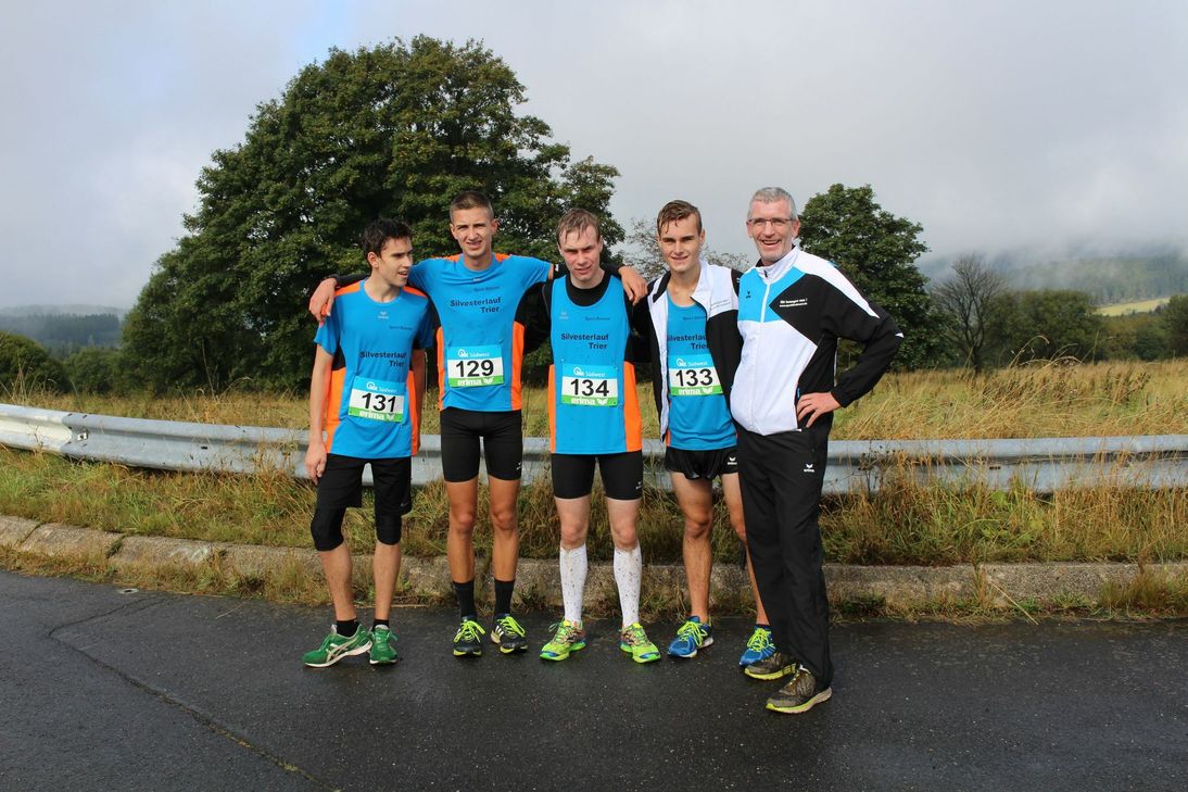 Die Berglauf-Rheinland--Meisterschaften die vor kurzem in Emmerzhausen hatten es in sich. Zwar nur 6800 m lang dafür aber 403 Höhenmeter und extrem schlechtes Wetter machten dabei den Athleten das Leben extrem schwer. Dabei wechselte das Wetter sich mit leichtem Schneefall eine Stunde vor dem Start und Starkregen beim Start ab. Aufgeweichte Wiesen und Waldwege machten den Lauf zu einer reinen Rutschpartie. Jonas Westermann vom Silvesterlauf Trier machte das aber scheinbar wenig aus. Er erreichte das Ziel nach 31:49 min . als Gesamt-7. und gewann damit die MU20. Tim Winkelmann erreichte das Ziel nach 33:43 min als Gesamt 13. und 2. der MU20 . Jonas Horn startete hoch und wurde Gesamt 23. und 3. der MU20 in 35.59 min. Damit gewannen sie souverän die Mannschaftswertung der MU20. Aaron Merten, der das erste Mal für den Silvesterlauf Trier und das gleich bei einem Berglauf am Start war, schlug sich tapfer und wurde Gesamt-27. und 4. der MU 18 in 37.44 min. Pressemitteilung Verein Silvesterlauf