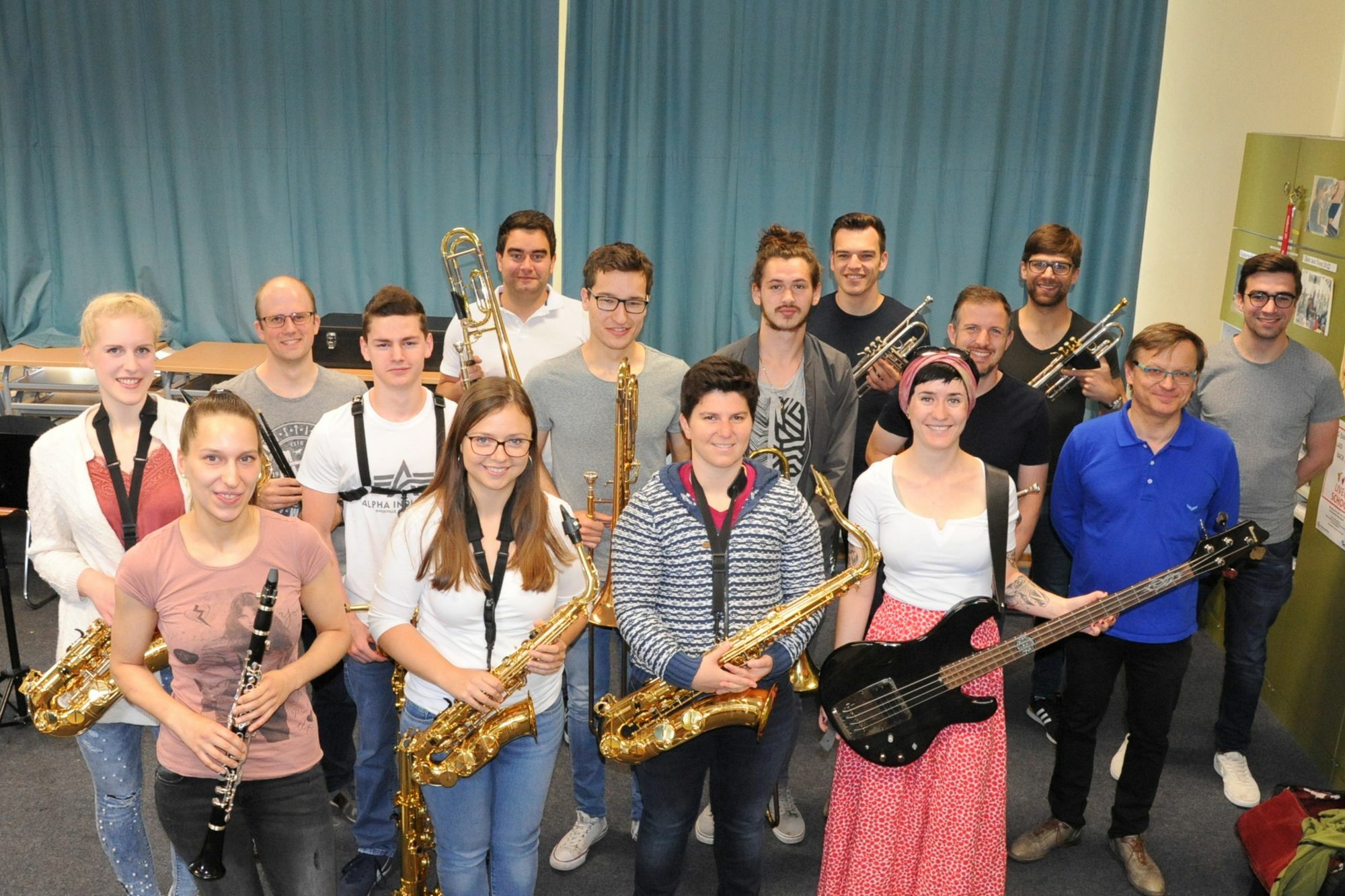 Für ihr Jubiläumkonzert 20 Jahre Big Band "Laid Back" proben heutige Mitglieder und "Ehemalige" des Gymnasiums Hermeskeil.