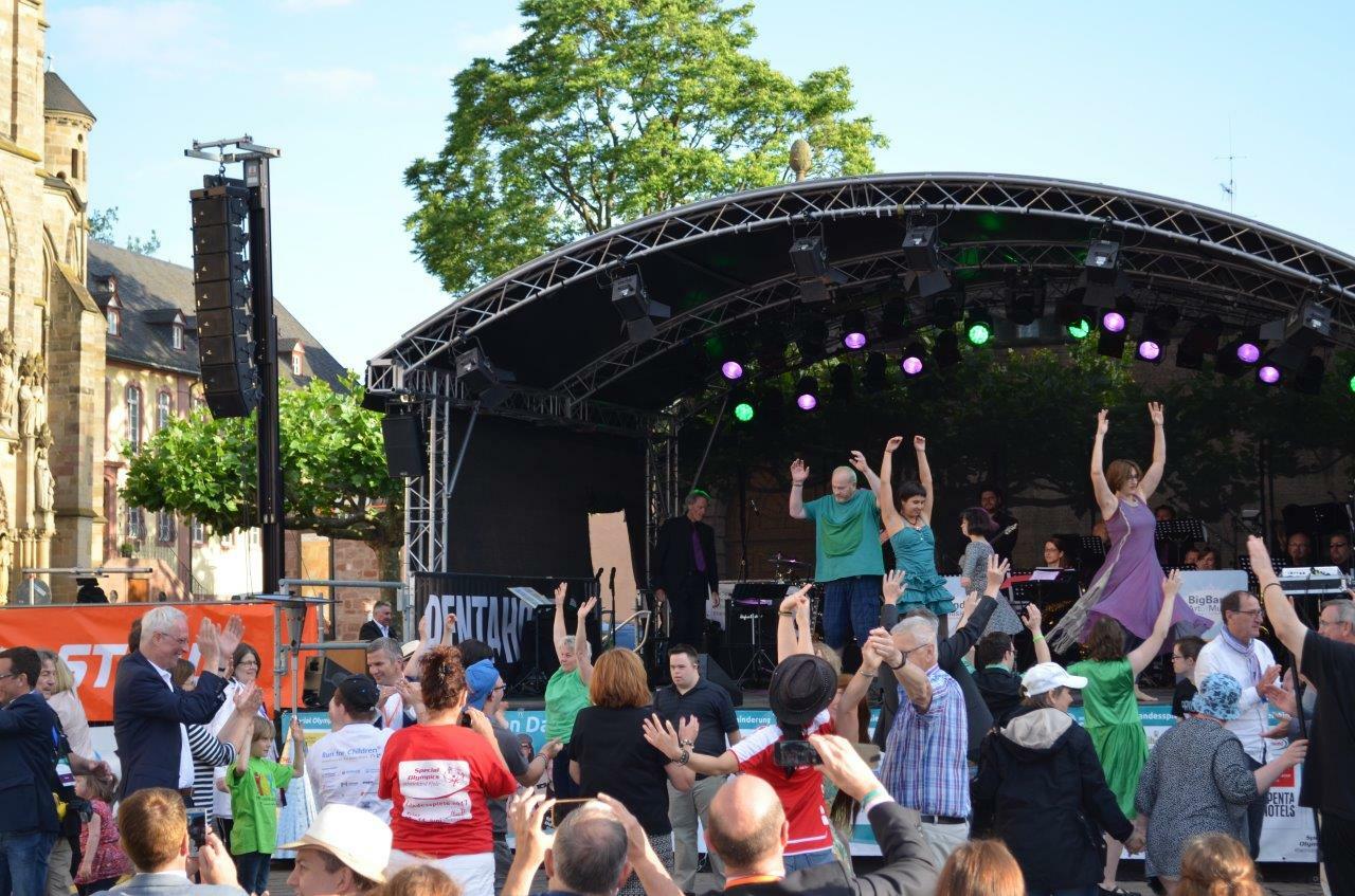 Mark Solomeyer, Athletensprecher der Special Olympics, und ZDF-Sportmoderator Wolf-Dieter Poschmann führten bei bestem Wetter durch das zweieinhalbstündige Eröffnungsprogramm vor dem Dom. Musik- und Gesangsacts sorgten für eine großartige Stimmung und packende Tanzperformances ließen das Publikum noch näher zusammenrücken.