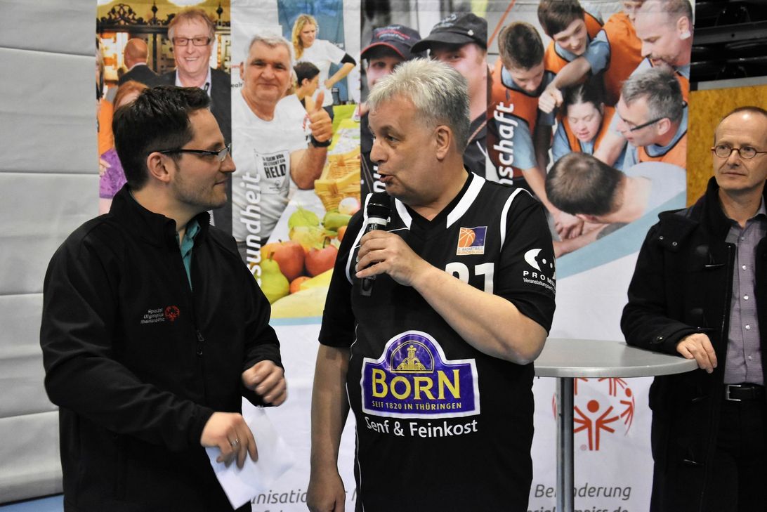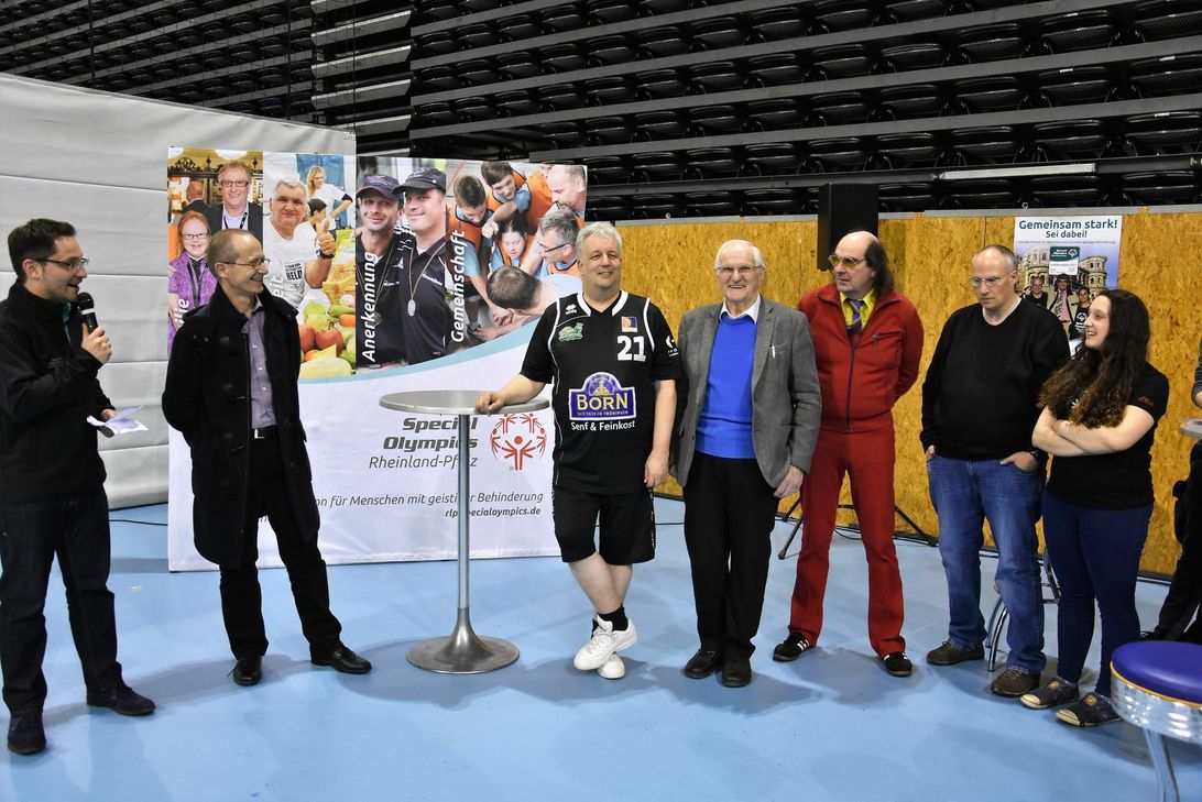 Neben den Sportler-Botschaftern der diesjährigen Spiele, Viviana Saltalamacchia und Heinrich Waßenberg (Athleten der Lebenshilfe Trier) war Guildo Horn, ebenfalls Botschafter der Landesspiele, extra angereist, um beim Spiel dabei zu sein. Der Musiker und gebürtige Trierer wird sich im Vorfeld und während der Spiele aktiv vor Ort einbringen. Guildo Horn und Andreas Ludwig ließen es sich nicht nehmen, selbst nach dem Ball zu greifen - ganz im Sinne des inklusiven Gedankens.