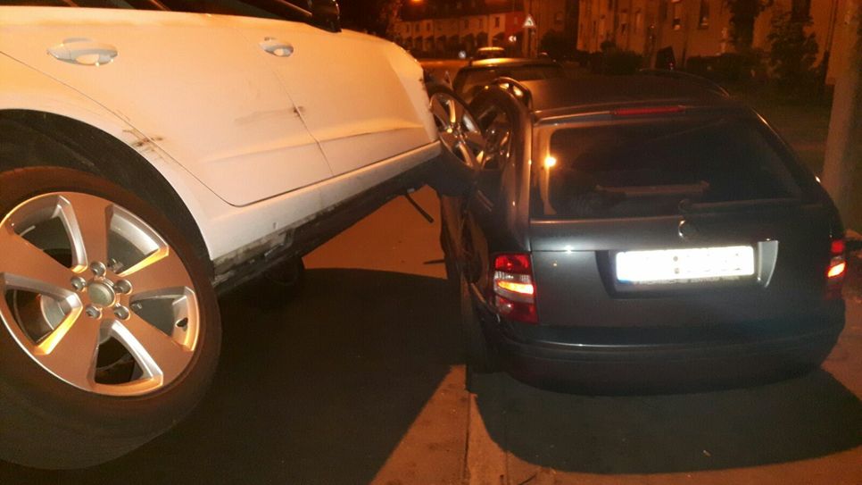 Die 23-Jährige aus dem Landkreis Bernkastel-Wittlich war mit ihrem Audi in Richtung Verteiler Nord unterwegs. Auf Höhe der Hausnummer 51 kam sie aus bisher ungeklärter Ursache nach rechts von der Fahrbahn ab und krachte dort mit drei am Straßenrand geparkten Autos zusammen. Der Audi der jungen Frau stand anschließend schräg mit einem Reifen auf dem Autodach eines schwarzen Skoda Fabia. Auch die beiden anderen Fahrzeuge - ein BMW und ein Peugeot 406 - wurden beschädigt. Es entstand ein Schaden von circa 40.000 Euro. Die Frau wurde vorsorglich von Rettungskräften der Berufsfeuerwehr Trier untersucht, blieb jedoch unverletzt. Das Auto war nicht mehr fahrbereit und wurde abgeschleppt. Fotos: Agentur Siko