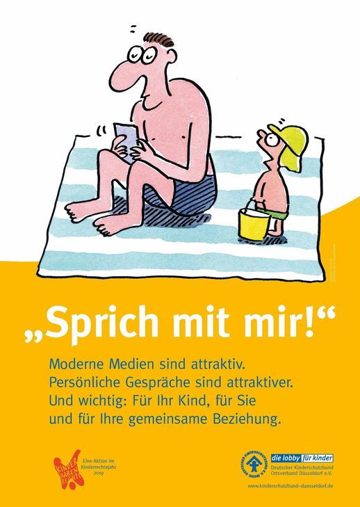 Der Deutsche Kinderschutzbund möchte mit einer Plakataktion anregen, das Smartphone häufiger wegzulegen und sich mit den Kindern zu beschäftigen. Das soll nicht mit erhobenem Zeigefinger geschehen, sondern humorvoll, aufmerksamkeitsstark und eindrücklich. Dafür wurden von der Cartoonistin Renate Alf aus Weimar drei Plakate entworfen. Sie zeigen typische Alltagsszenen mit Eltern, die ihrem Smartphone mehr Aufmerksamkeit widmen als dem eigenen Nachwuchs. Die Kinder auf den Plakaten fordern "Sprich mit mir". Das ist auch die Botschaft des Deutschen Kinderschutzbundes Orts- und Kreisverband Trier e. V.