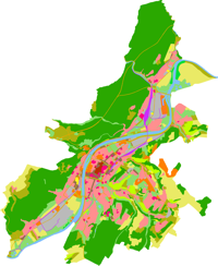 Die Grundkarte des neuen Flächennutzungsplan zeigt auf den ersten Blick, wie heutige und künftige Siedlungsgebiete sowie Grünflächen im Stadtgebiet von Trier verteilt sind. Karte: Stadtplanungsamt