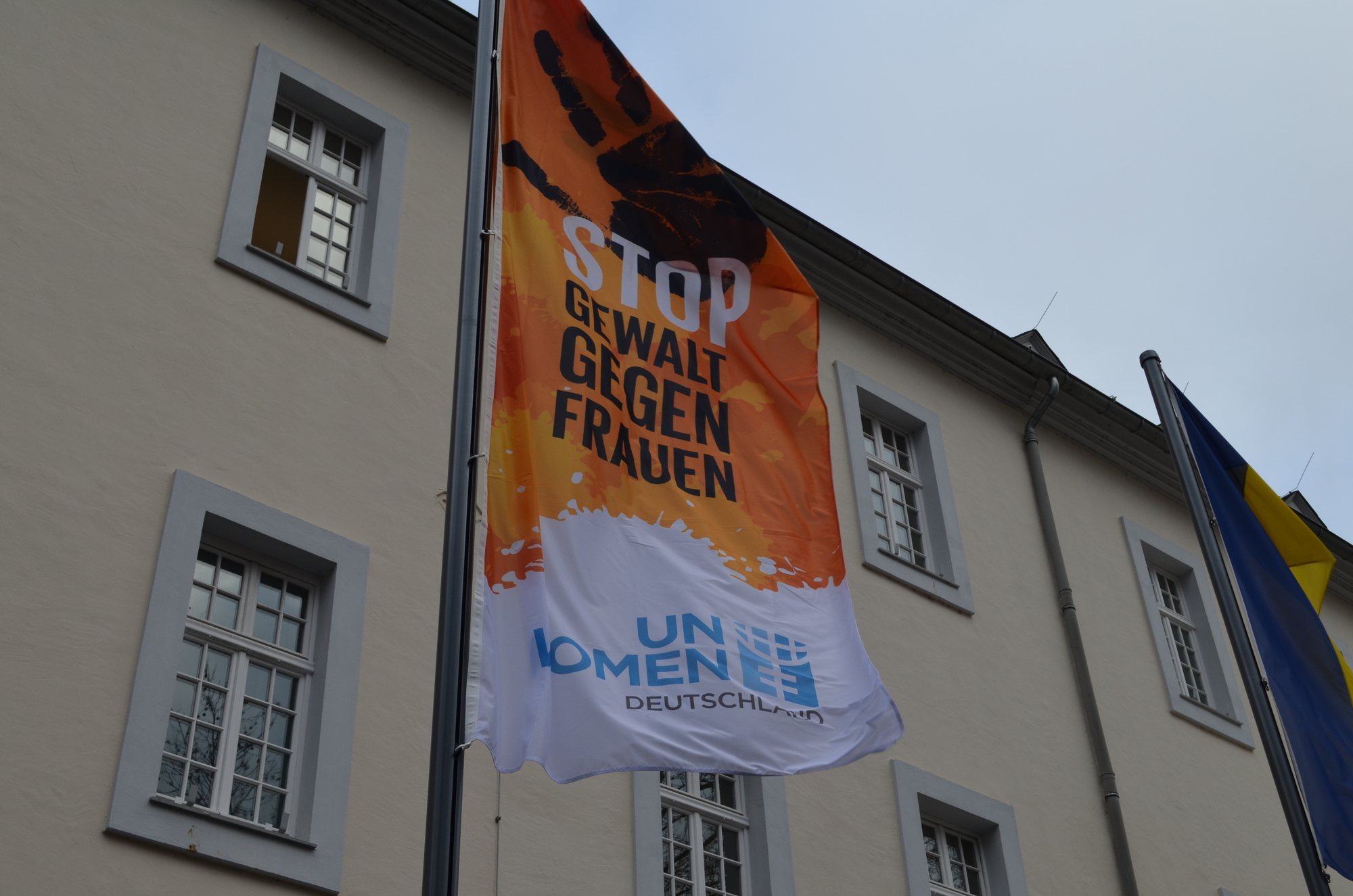 Trier. Zum Auftakt der Kampagne "Orange the World", die am 25. November startet, wurde heute Morgen vor dem Rathaus am Augustinerhof eine Flagge gehisst.