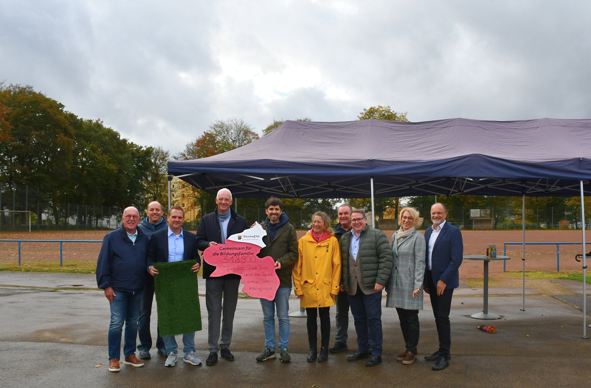 Der Trierer Stadtteil Heiligkreuz erhält einen neuen, modernen Sportplatz. Die bestehende Anlage, die bisher als Hartplatz genutzt wurde, wird vollständig erneuert und künftig mit einem Kunstrasenfeld ausgestattet. Damit sollen bessere Trainings- und Spielbedingungen geschaffen werden, die sowohl dem Schul- als auch dem Vereinssport zugutekommen. Bildungsminister Sven Teuber übergab hierfür einen Förderbescheid des Landes Rheinland-Pfalz in Höhe von 318.900 Euro.