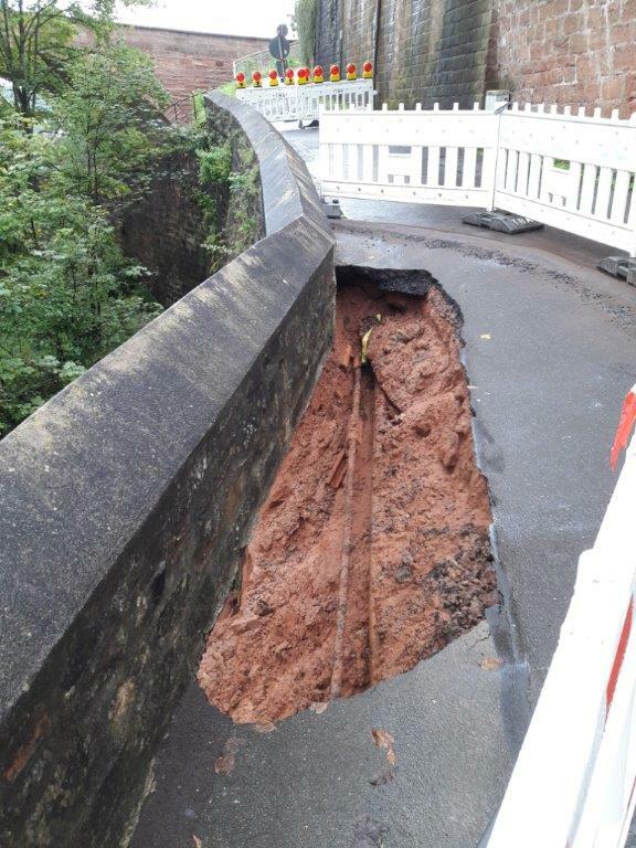 Die Berufsfeuerwehr wurde um 22.38 Uhr zu einem Einsatz wegen Gerölls auf der Straße alarmiert. Vor Ort stellten die Einsatzkräfte fest, dass ein Teil einer Stützmauer zwischen Straße und Sirzenicher Bach weggebrochen war. Die Straße wurde dadurch unterspült, die oberste Deckschicht brach teilweise ab. Um kein Risiko einzugehen, wurde das in unmittelbarer Nähe stehende Haus von der Einsatzleitung für zunächst nicht mehr bewohnbar erklärt. Die beiden Bewohner verbrachten die Nacht bei Bekannten. Die Straße wurde gesperrt, der hintere Teil des Mühlenwegs ist derzeit nur fußläufig zu erreichen. Die Stadt hat einen externen Bodengutachter beauftragt, der im Laufe des Tages die Standfestigkeit des Bodens untersuchen wird. Nach ersten Erkenntnissen ist das Haus nicht gefährdet und kann wieder bezogen werden. Über weitere Maßnahmen wird zeitnah entschieden und informiert. Red