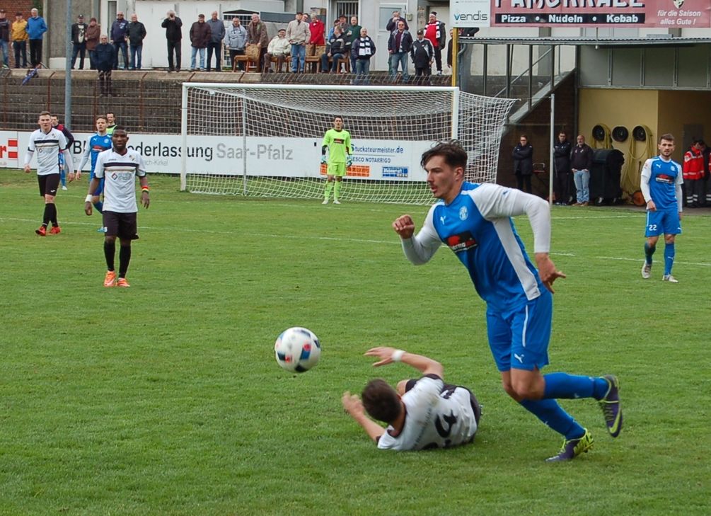 Ohne die verletzt fehlenden Marc Mees, Domenik Kohl, André Petry, Yannik Thömmes und Kevin Heinz – Andreas Hesslein saß zumindest wieder auf der Ersatzbank – war der SVM keineswegs chancenlos: Alex Klein probierte es in der 27. Minute aus der zweiten Reihe, Albert Becker blockte ab. Zwei Minuten vor der Pause kam der Ball nach einer Kombination über Klein und Lukas Jonas zu Willems, dessen Abschluss aber zu schwach war, um Borussia-Schlussmann Malcom Little zu überwinden. Die von Michael Petry (wechselt nach der Saison zu Ligakonkurrent Hertha Wiesbach und wird durch Valentin Valtschev ersetzt) trainierten Hüttenstädter verzeichneten zweifellos mehr Offensivaktionen als die Gäste, waren aber am und im Strafraum einfach zu unentschlossen. Als auch Kadrija in der 52. Minute aus aussichtsreicher Position versagte, meinte bereits einer der 180 Zuschauer im altehrwürdigen Ellenfeldstadion: „Die könnten morgen noch spielen und würden kein Tor schießen…“ Die Unruhe in der Borussen-Abwehr wurde unterdessen mit der Zeit immer größer. Einen Fauxpas von Schlussmann Little hätte in der 67. Minute beinahe Willems ausgenutzt, der Ex-Trierer Boris Becker bügelte aber den Fehler wieder aus. Einige Minuten später kam Jan Brandscheid nach Hereingabe von Matija Jankulica nicht mehr an den Ball –ein paar Zentimeter fehlten ihm hier, um den Ball über die Linie zu drücken.