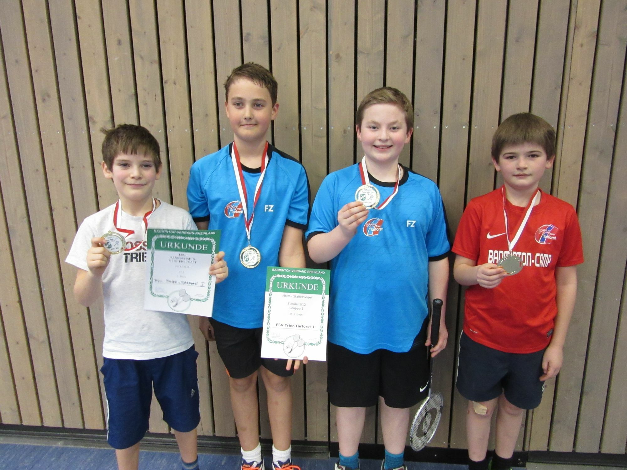 Bemerkenswert auch das Abschneiden der zweiten Mannschaft. War schon die Finalteilnahme ein riesiger Erfolg, so wuchs die 2. Mannschaft im Laufe der Finalrunde über sich hinaus. Mit einem überraschenden 4:2 Sieg gegen die DJK Plaidt, einem erkämpften 3:3 gegen TuS Bad Marienberg und nur einer Niederlage gegen die erste Mannschaft landete die 2. Mannschaft am Ende auf dem 2. Platz und durfte sich über die Vize-Meisterschaft freuen. Die zweite Mannschaft spielte in der Besetzung Emanuel Küsters, Simon Holzknecht, Ben Schieben und Jannik Brill. Das Bild 1 zeigt obere Reihe: Nic Heib, Armin Kuhberg, Simon Brill, Carl Cronqvist ( FSV 1. Mannschaft ) untere Reihe : Simon Holzknecht, Ben Schieben, Emanuel Küsters und Jannik Brill ( FSV 2. Mannschaft ) Das Bild 2 zeigt die Rheinlandmeister Nic Heib, Armin Kuhberg, Simon Brill und Carl Cronqvist