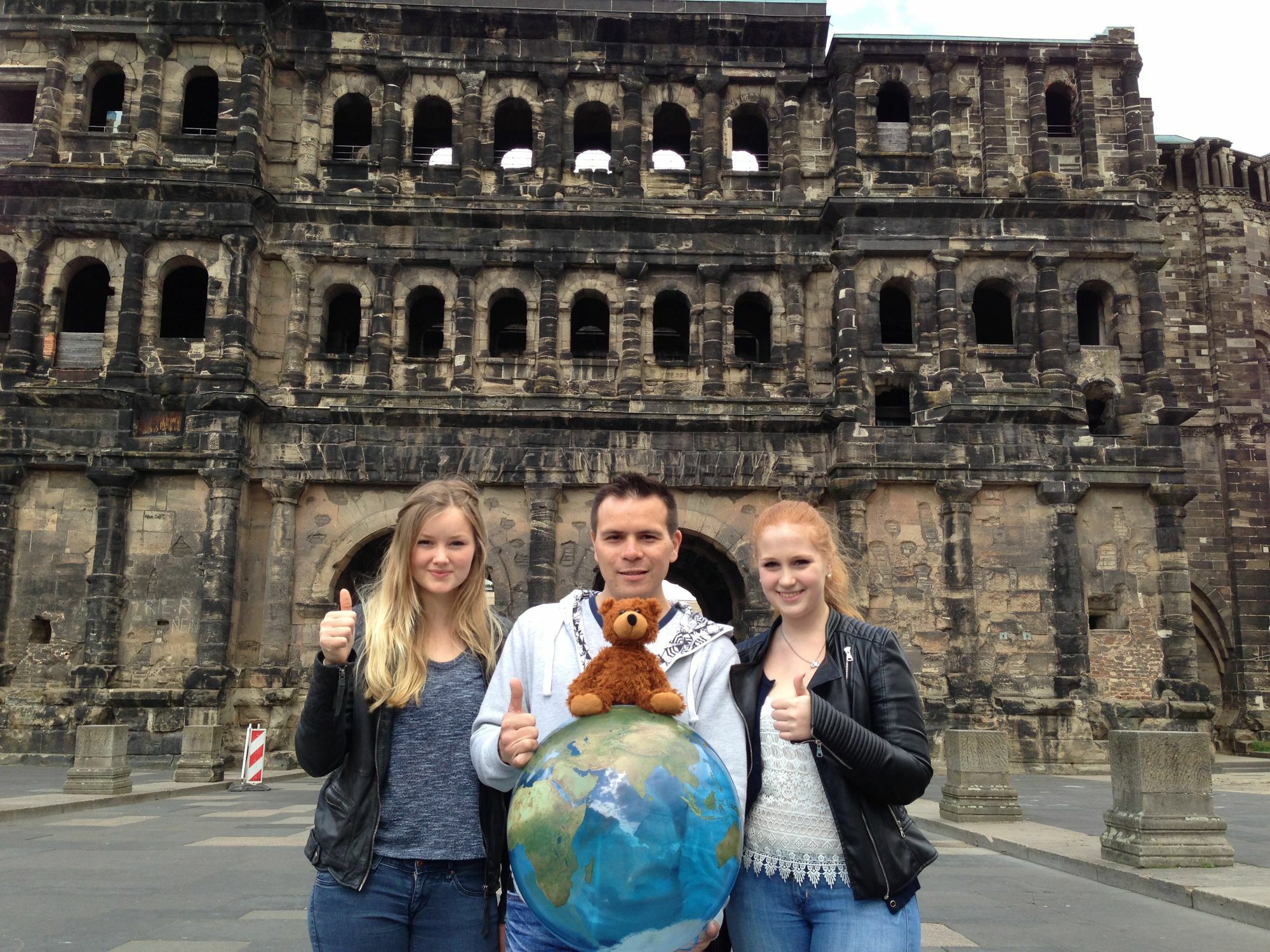 Die Studenten Laura Schäfer, Mareike Dohle und Rene Reissig schickten den kleinen Bären vor fast einem Jahr von Trier aus auf Weltreise. Die Trierer hatten ihn zuvor bei einer Umfrage "Bruno Bear" getauft. Bruno ist in den bald 365 Tagen seiner Reise viel herumgekommen. Über 500.000 Kilometer hat er zurückgelegt. 43 Ländern hat besucht. Er war beispielsweise in Spanien, Tschechien, Polen, Norwegen, Österreich, Australien, Indien, Thailand, Frankreich, Neuseeland, Uruguay, Nicaragua, Mexico, Ukraine, USA, Niederlande, Kenia, Vereinigte Arabische Emirate, Irland, China und Monaco. Auch in über 30 deutschen Städten war der kleine Bär zu Gast. Die Stationen seiner Reise kann man auf seiner Facebook-Seite nachschauen.