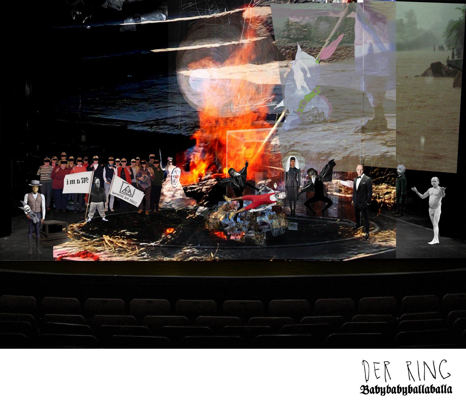 Das Musiktheater-Projekt "Ring-Babybabyballaballa" schaut sich Wagners "Ring" durch die Brille des irischen Schriftstellers Samuel Becketts und eines afrikanischen Schamanen an. Die Interpretation ist eine Collage, eine Stilmischung aus isländischer Vorzeitsaga, Traumdeutung, Hollywoodglamour, Kasperldrastik, afrikanischer Dodo-Oper, Nõ-Theater und Psychothriller. Sie wirft einen globalisierten Blick auf die deutsche Nibelungensage, eine Geschichte über Gier, Mord, Verrat und Liebe.