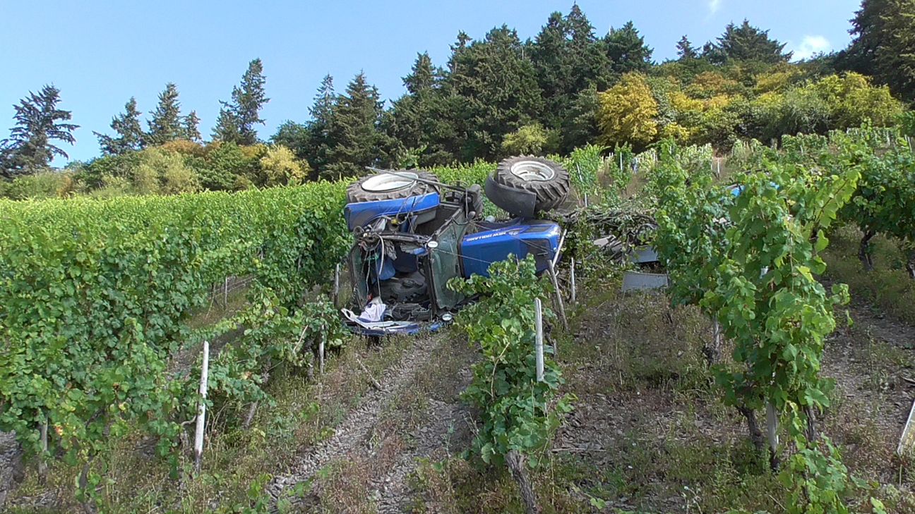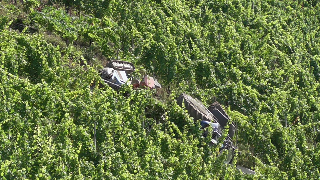 Warum der Traktor mit seinem Anhänger sowie der darauf stehenden Raupe den Weinberg hinab stürzte, ist derzeit noch nicht klar. Mehrere Winzer waren zu diesem Zeitpunkt in der Steillage und arbeiteten über der Unfallstelle. Sie eilten zu dem abgestürzten Traktor und setzen den Notruf ab. Der Traktorfahrer konnte sich mit einem Sprung aus seinem Führerhaus retten - das rettete ihm womöglich das Leben. Wie es zu dem Unglück kommen konnte, ist derzeit noch nicht klar. Am Traktor entstand ein Totalschaden. Die Höhe des Schadens beträgt rund 100.000 Euro. Die Weintrauben haben ebenfalls einen großen Schaden davongetragen.