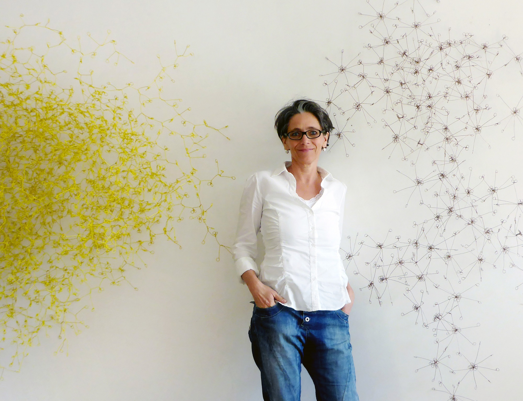 Unter dem Titel "Trans-Formationen" zeigt sie mit den Mitteln der Kombination und Wiederholung räumliche Objekte aus sogenannten armen Materialien, insbesondere aus industriell gefertigten Produkten, wie z. B. Müllsackverschlüsse, mit Kunststoff ummantelter Draht und Kartonagen. Sie nutzt und überlistet zugleich die Materialeigenschaften dieser profanen Dinge und macht aus dem Unscheinbaren unserer Konsumgesellschaft hochästhetische Gebilde, die bis ins kleinste Detail präzise und in der Wirkung spielerisch und poetisch sind.